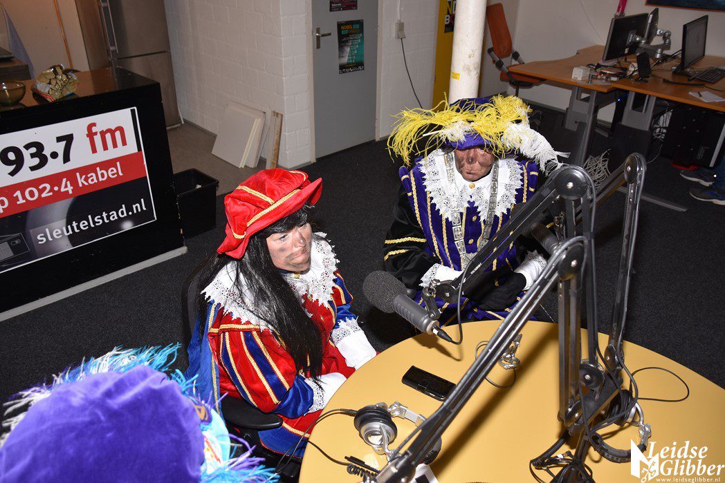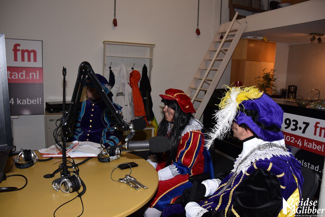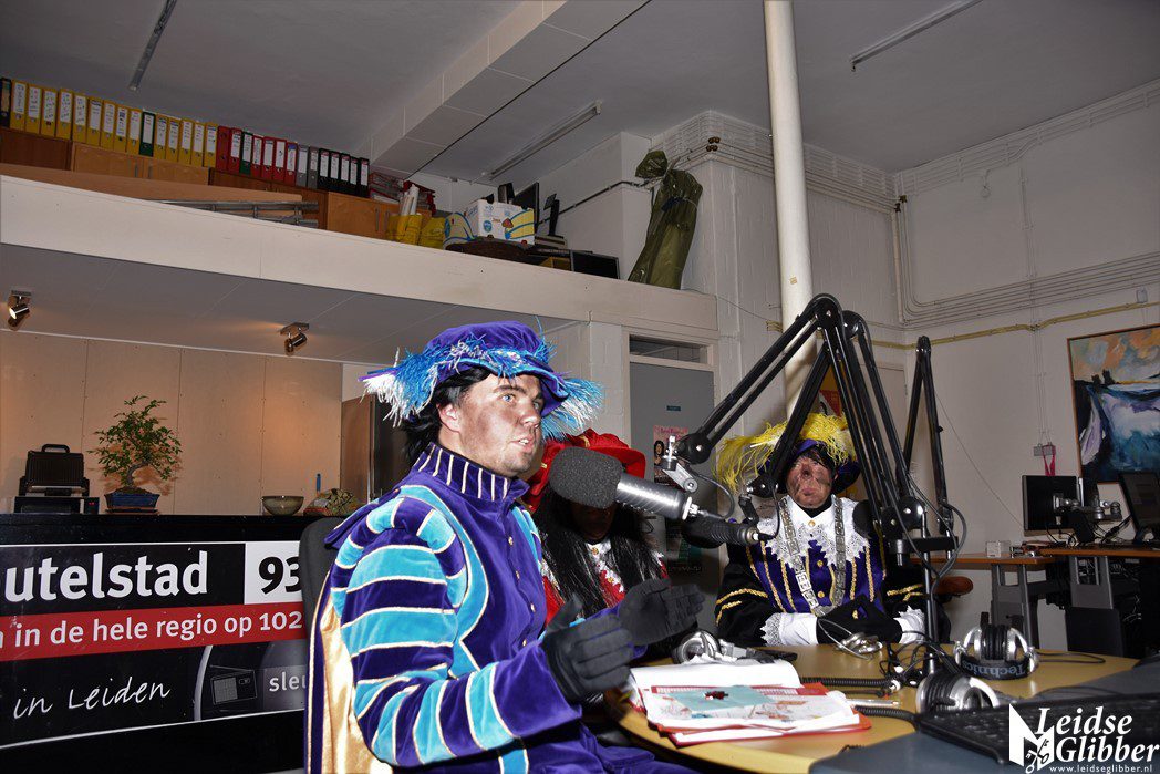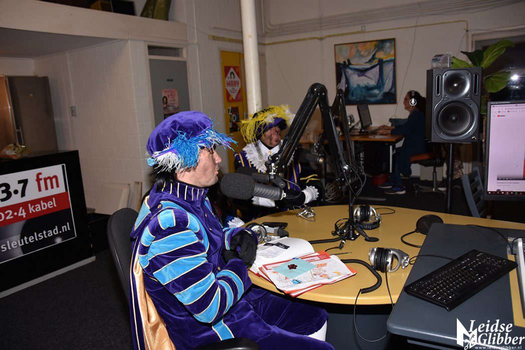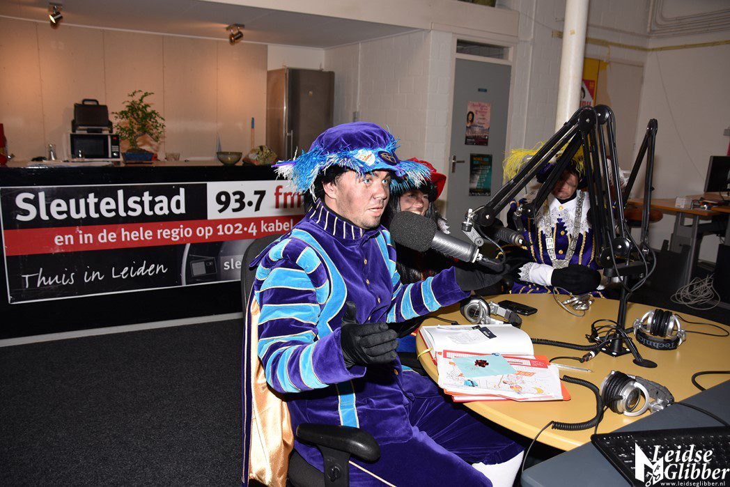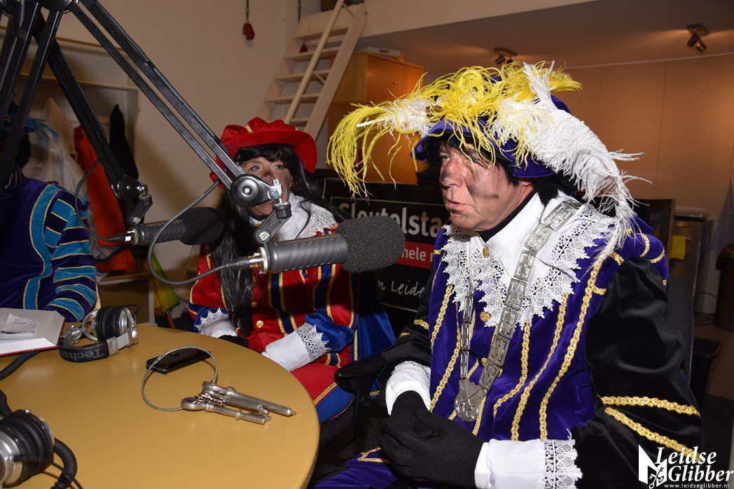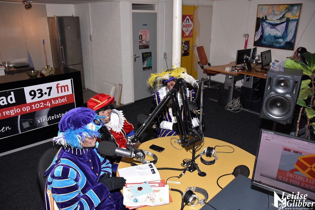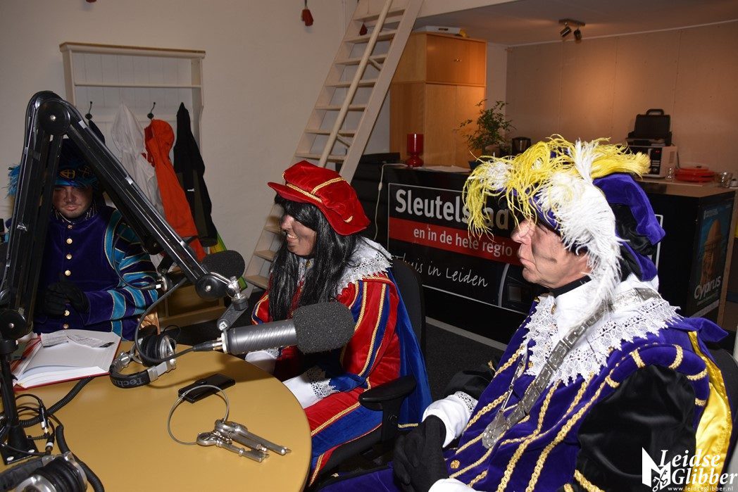 Even dacht ik dat ik droomde toen ik de studio van Sleutelstad binnen wilde stappen. Op het parkeerterrein zag ik  Meisjespiet, Hoofdpiet en Sleutelpiet staan. Zijn jullie al aangekomen met de Stoomboot vroeg ik, toen ik van de schrik bekomen was.  Wat een ellende dan zijn we helemaal vergeten jullie feestelijk in te halen, pfff hoe moet dat nou wat ellende allemaal.  Rustig , rustig, rustig zei de Hoofdpiet. De Stoomboot vaart nog op zee ter hoogte Frankrijk, alleen wij zijn van boord gehaald om even te inspecteren of alles goed gaat in Leiden en we zoeken nog wat helpende handjes. Kom dan even binnen zei ik, dan kan je het op de radio vertellen wat je zoekt.