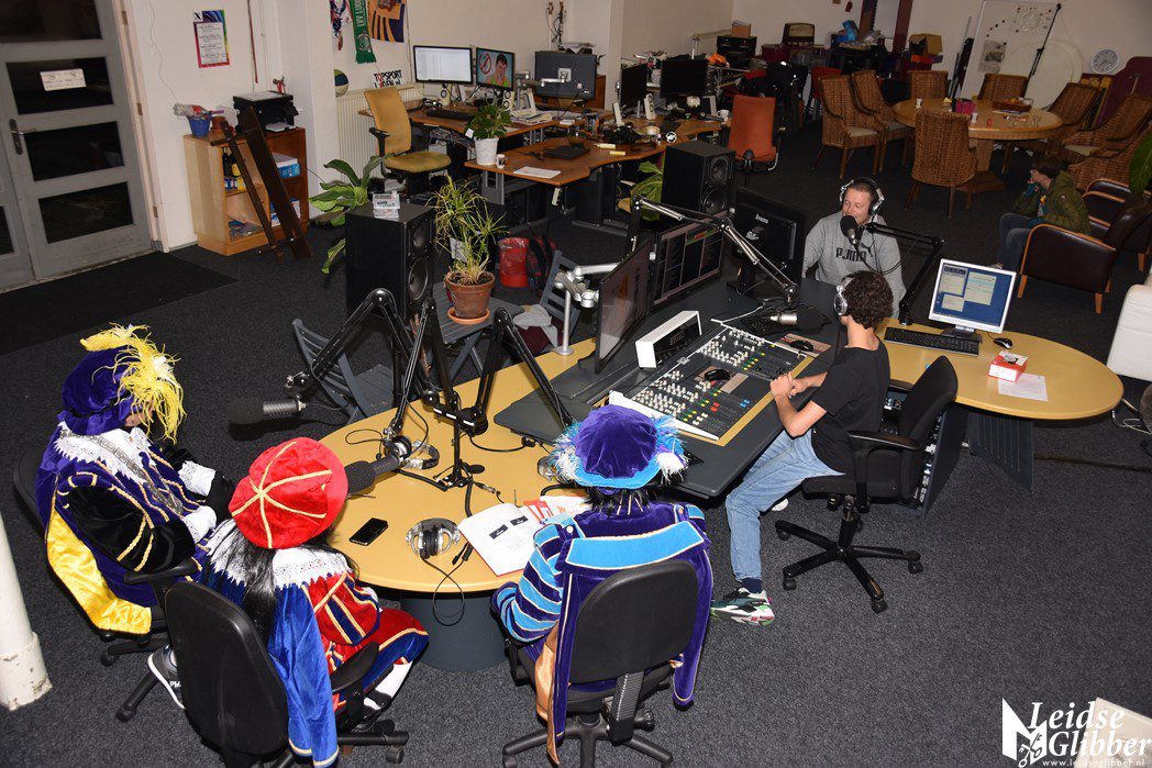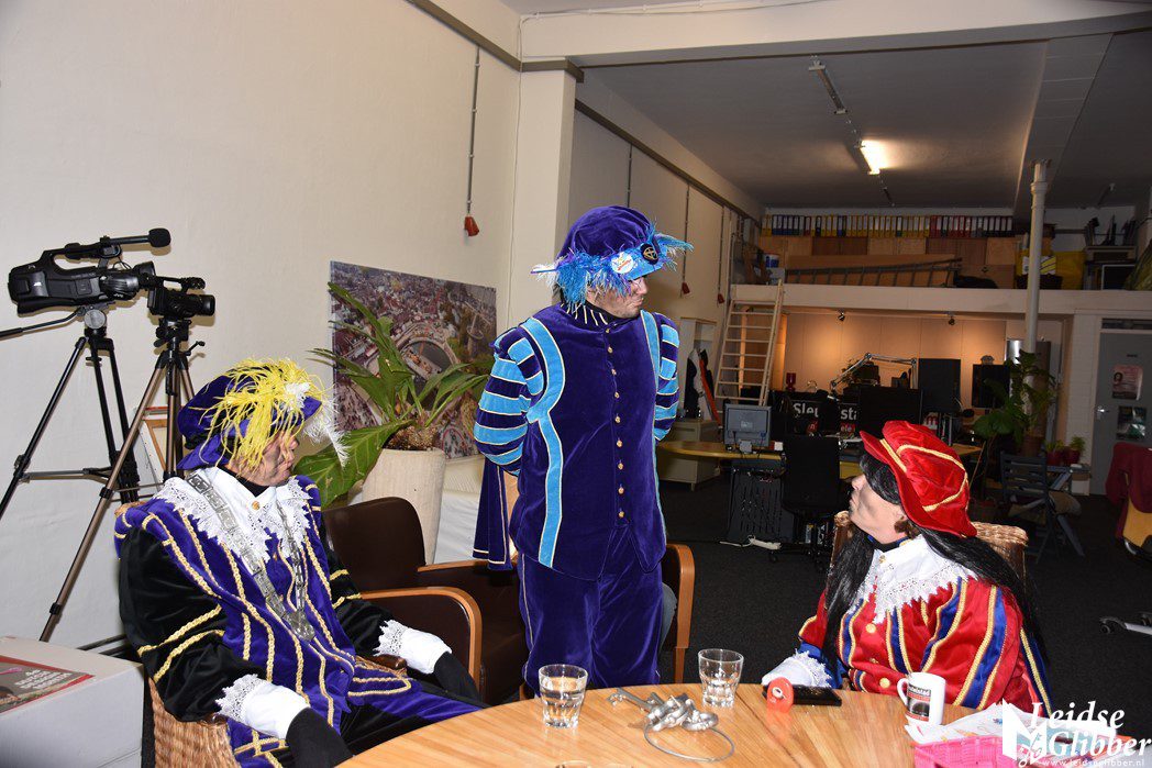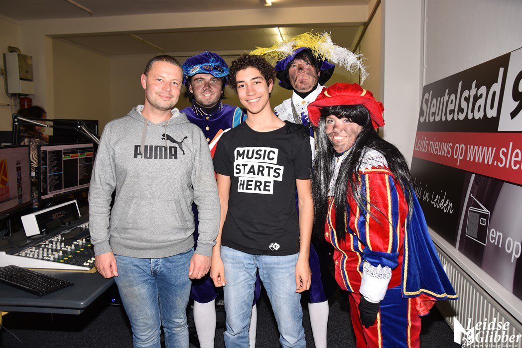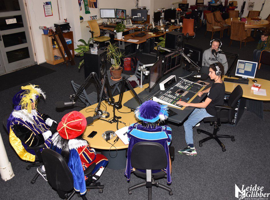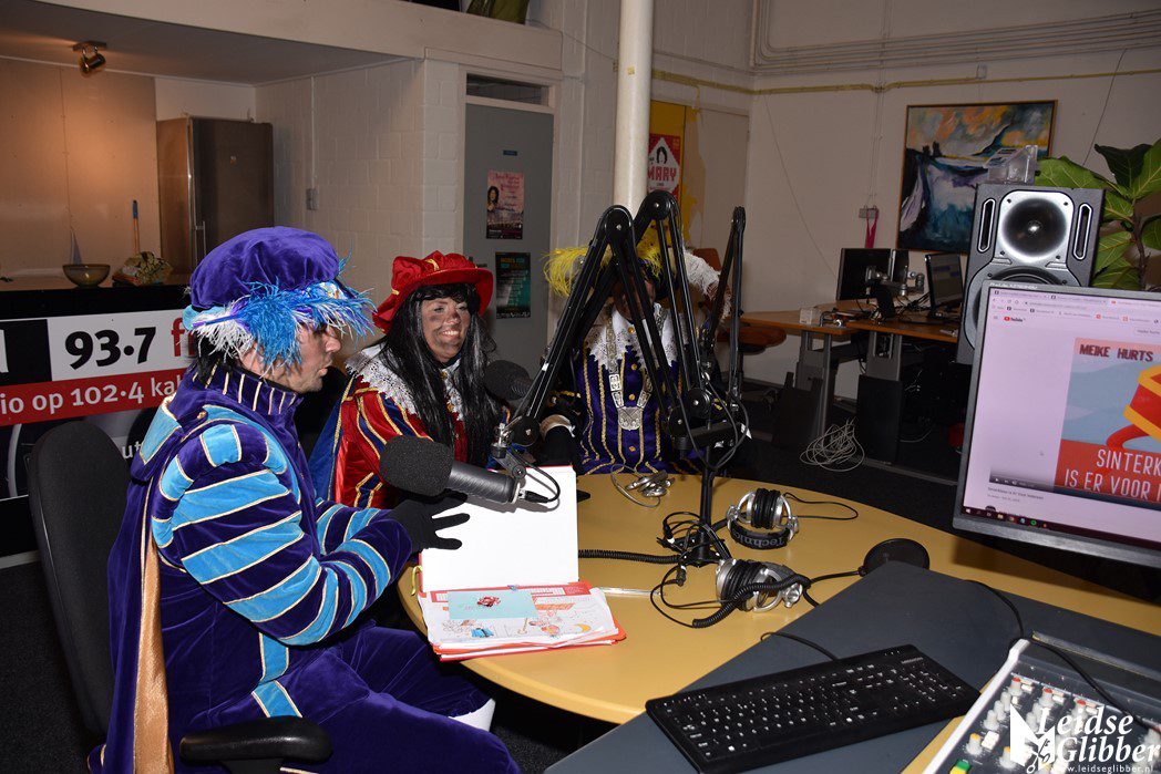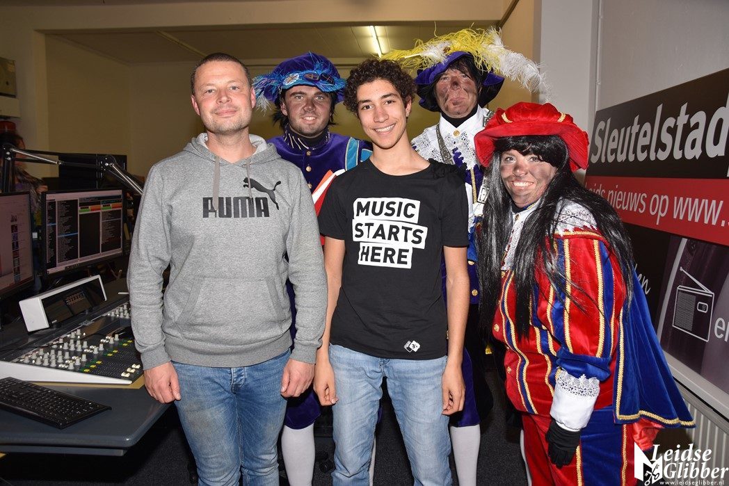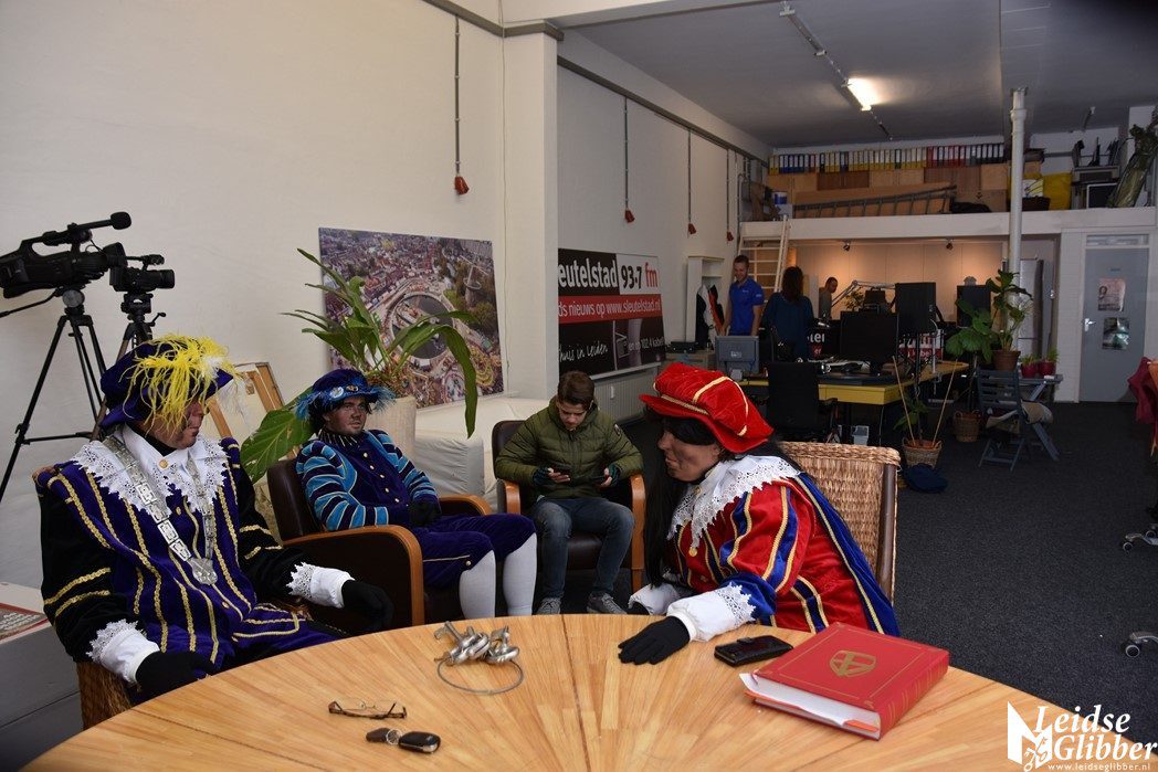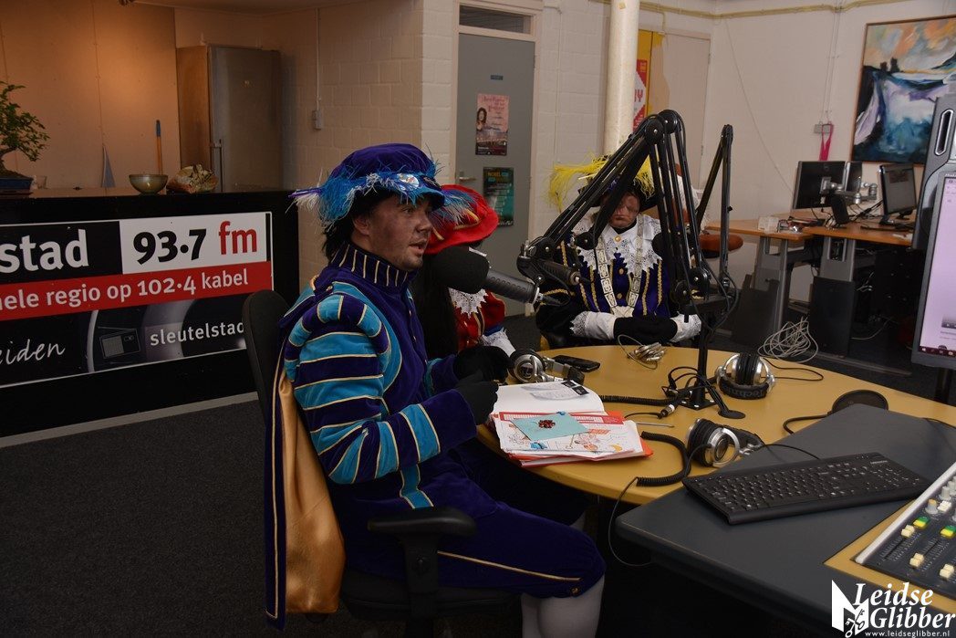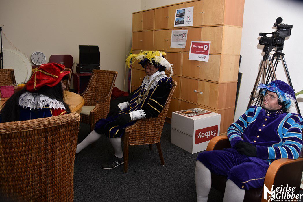 Even dacht ik dat ik droomde toen ik de studio van Sleutelstad binnen wilde stappen. Op het parkeerterrein zag ik  Meisjespiet, Hoofdpiet en Sleutelpiet staan. Zijn jullie al aangekomen met de Stoomboot vroeg ik, toen ik van de schrik bekomen was.  Wat een ellende dan zijn we helemaal vergeten jullie feestelijk in te halen, pfff hoe moet dat nou wat ellende allemaal.  Rustig , rustig, rustig zei de Hoofdpiet. De Stoomboot vaart nog op zee ter hoogte Frankrijk, alleen wij zijn van boord gehaald om even te inspecteren of alles goed gaat in Leiden en we zoeken nog wat helpende handjes. Kom dan even binnen zei ik, dan kan je het op de radio vertellen wat je zoekt.