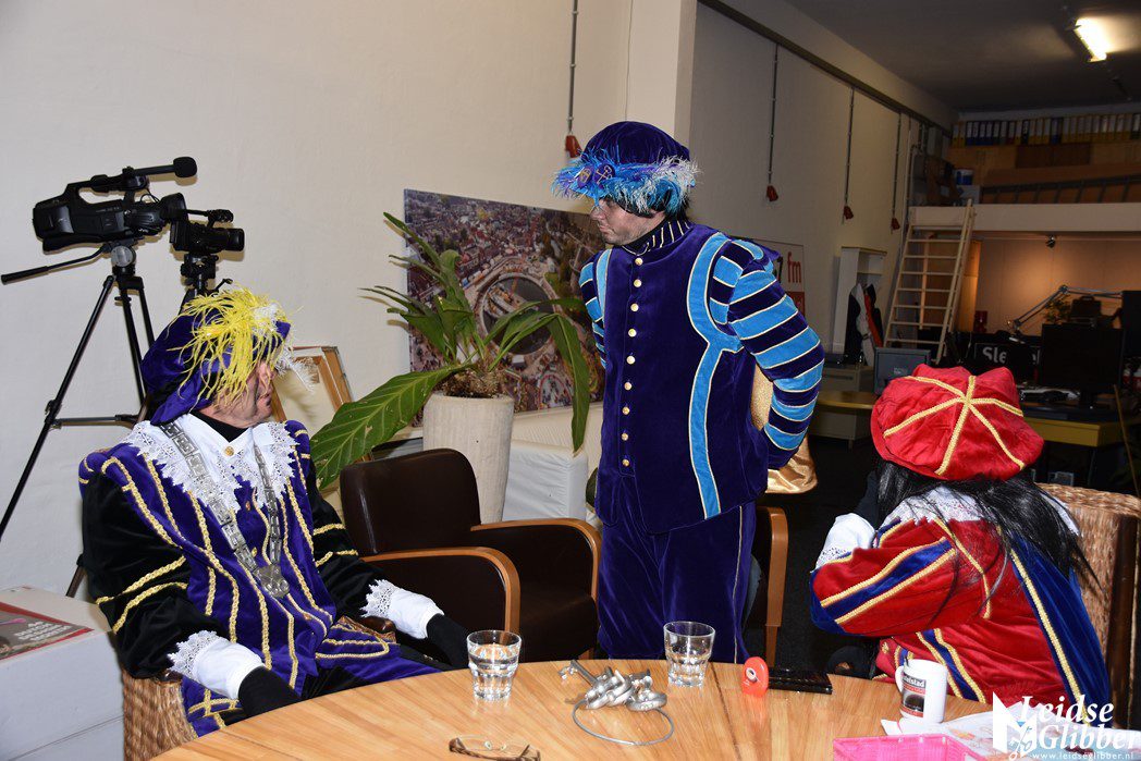 De Pieten gingen er eens uitgebreid voor zitten om het allemaal uit te leggen. Sinterklaas hoopt op zaterdag 16 november om 12 uur aan te komen op de Beestenmarkt in Leiden. Vanaf 11 uur treedt Mart Hoogkamer op en ook Meike Hurts en haar band en zangeressen zijn weer aanwezig. Mocht Sinterklaas nu te veel tegenwind hebben en niet op tijd zijn, dan is er gelukkig nog een leuk feestje met Mart en Meike geweest.