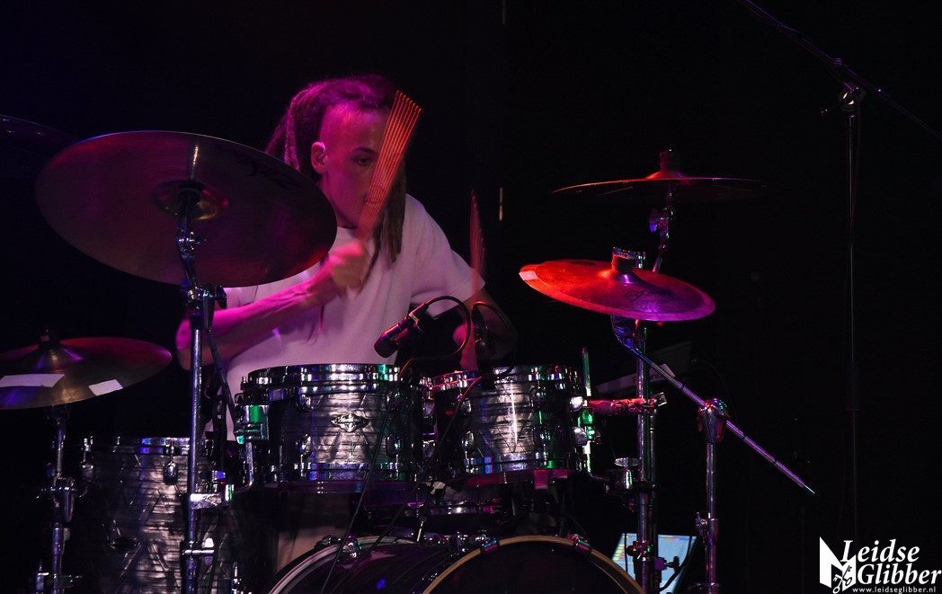 De drummer zat wat achteraf, maar niet alleen tijdens de nummers, ook tijdens een geweldige drumsolo liet hij horen dat hij er erg sterk aanwezig was.