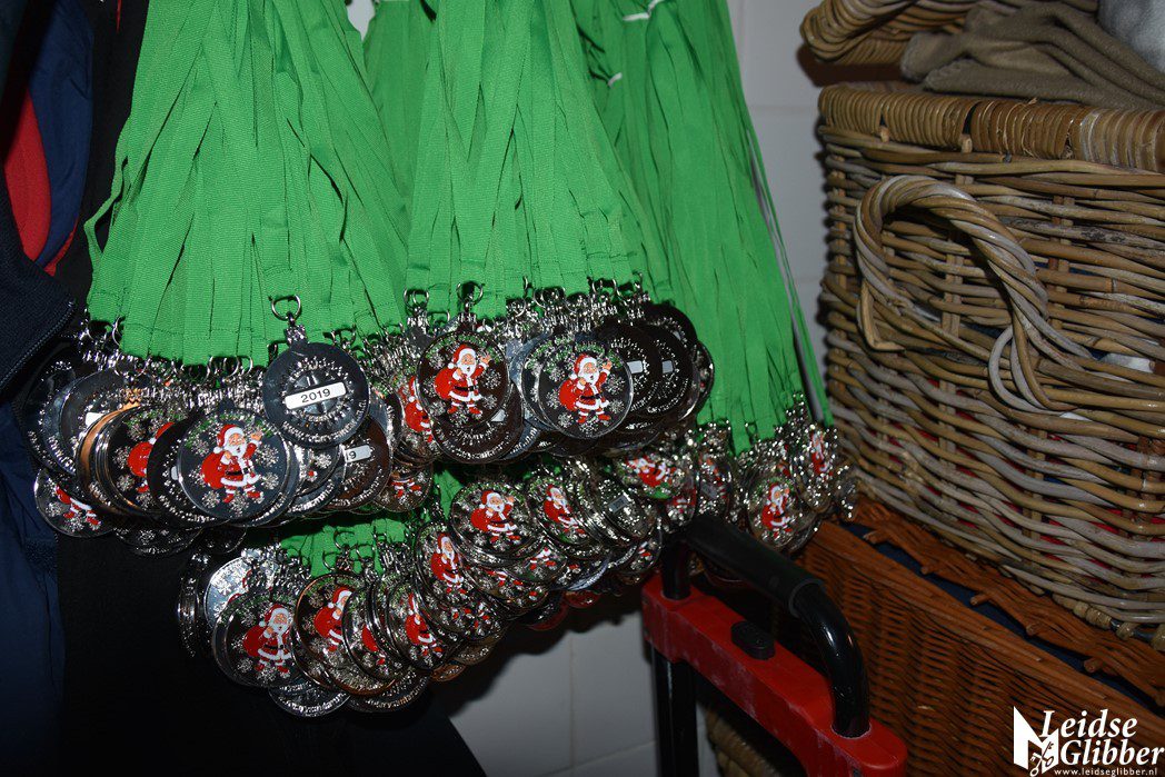 De medailles hangen klaar om vrijdagavond uitgedeeld te worden aan 1574 wandelaars in kerstkostuum.