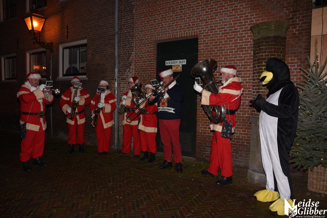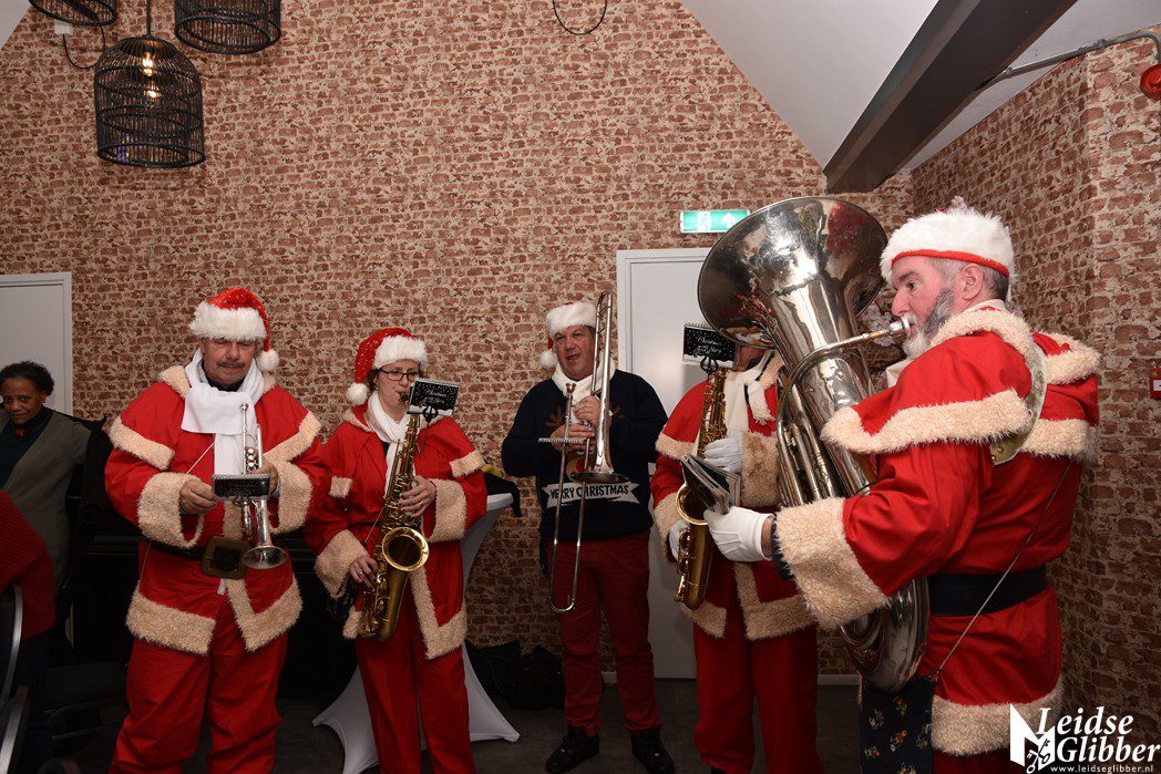 De deelnemers werden verwelkomd door het Kerstmannenorkest van de The Band of Liberation.