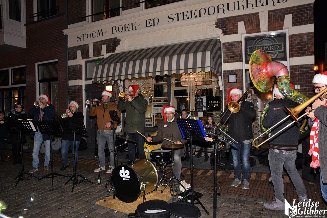 Op de hoek van de Hooglandsekerkgracht stond voor Eduardo een gezellige Jazzkerstband.