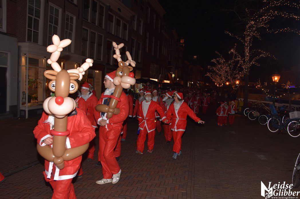 Rotary Santa Run. Leiden kleurde rood wit met zoveel kerstmannen op straat