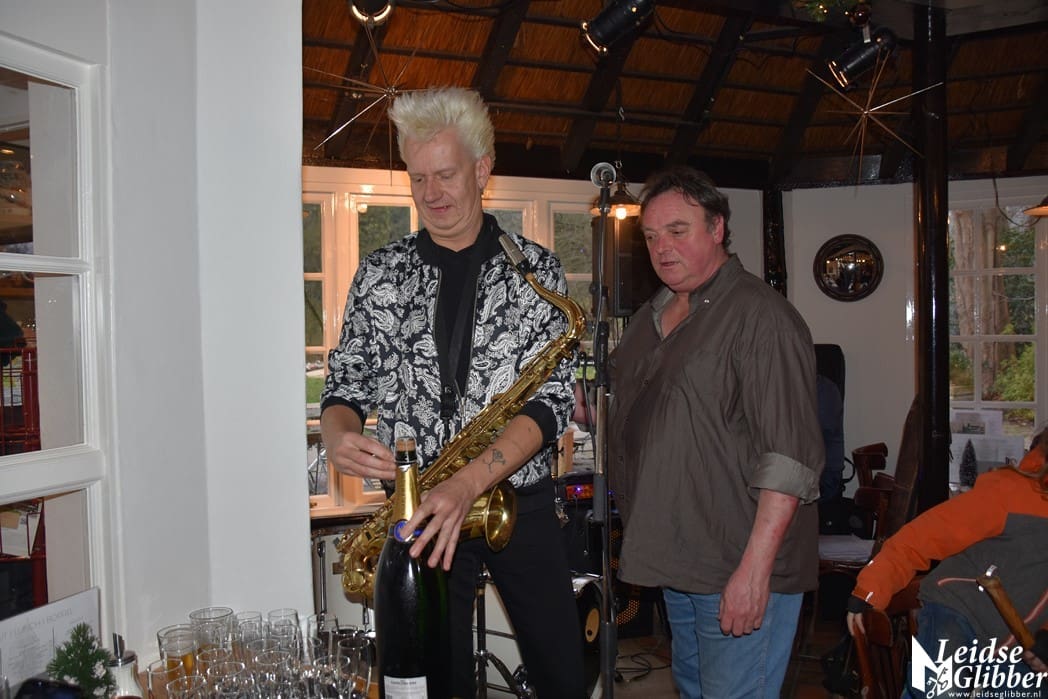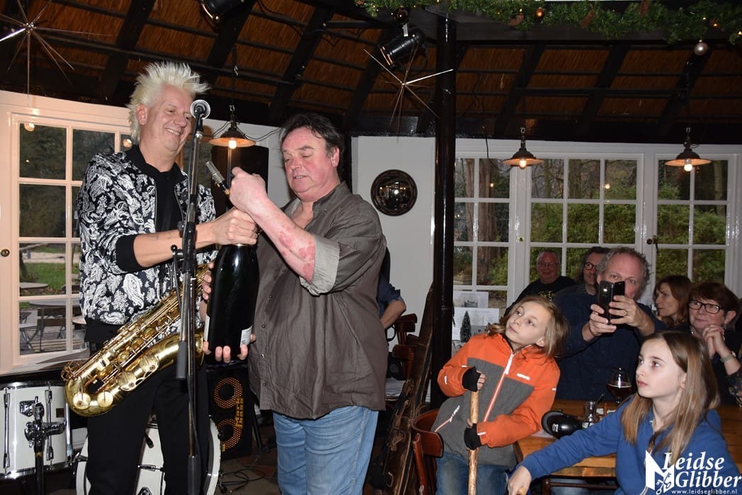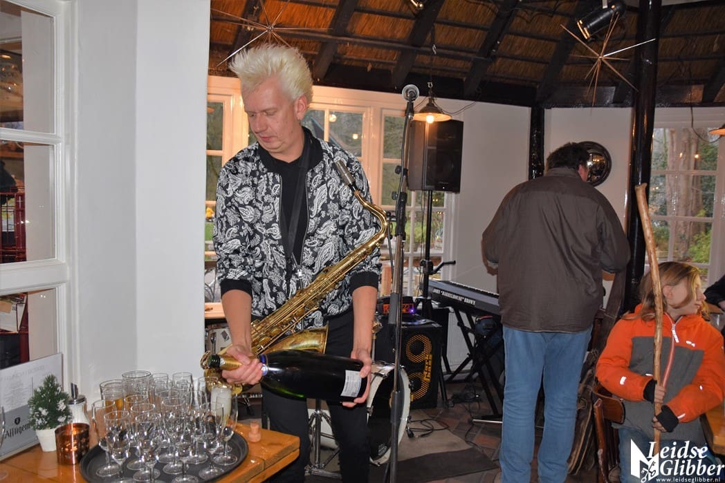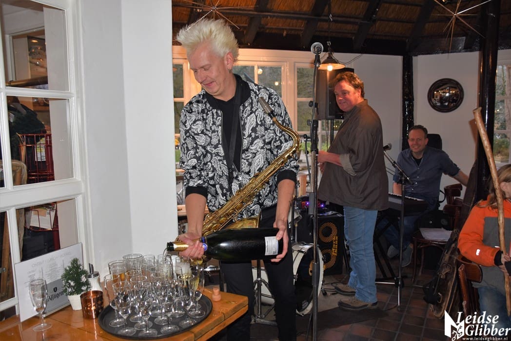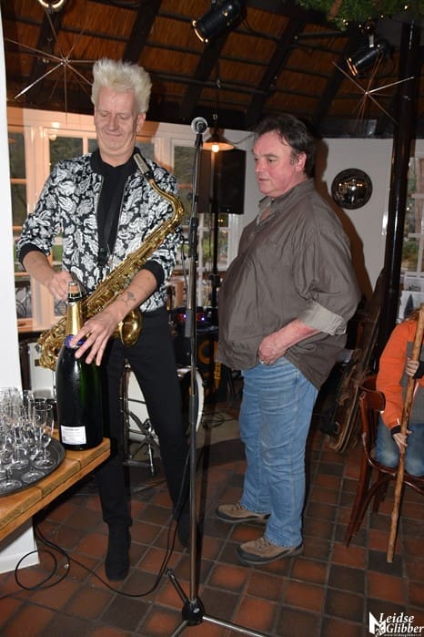 Voor mij is het ondertussen vaste prik, 1 januari ’s middags nieuwjaarsconcert en bubbels in Theehuis de Leidse Hout. Ook dit jaar opende Wouter Kiers tussen twee sessies door de enorme fles champagne,onder toeziend oog van drummer Andrew Spieker.