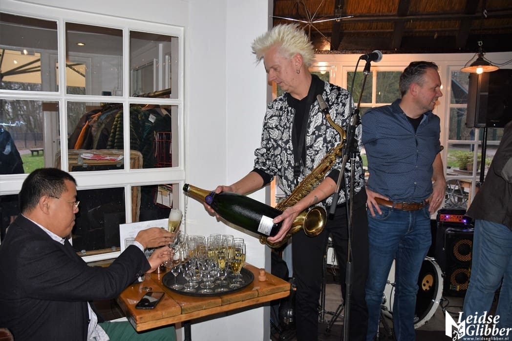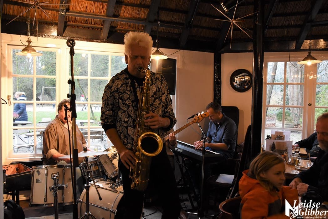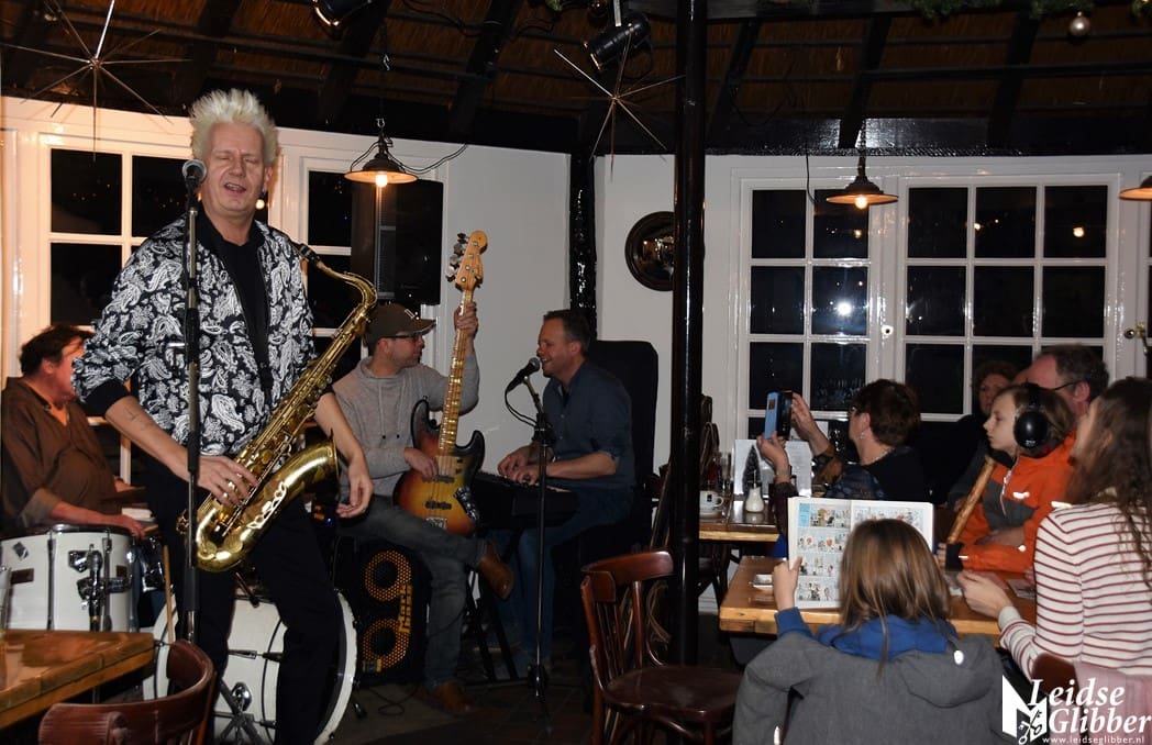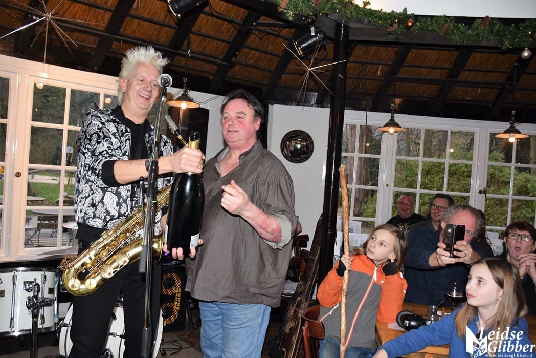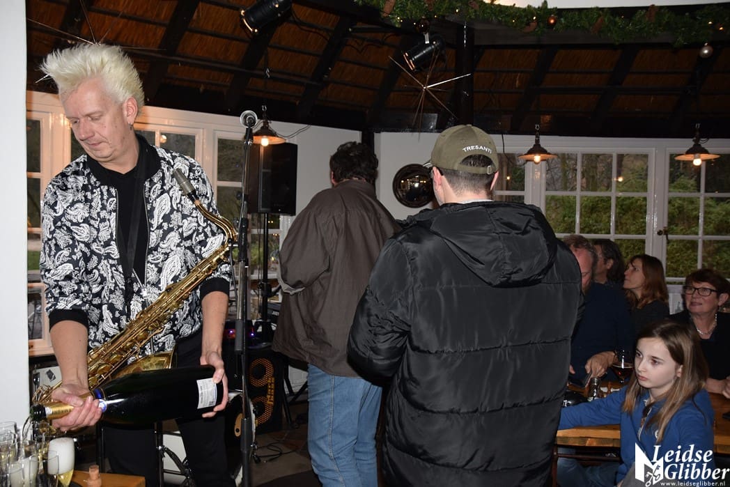 Voor mij is het ondertussen vaste prik, 1 januari ’s middags nieuwjaarsconcert en bubbels in Theehuis de Leidse Hout. Ook dit jaar opende Wouter Kiers tussen twee sessies door de enorme fles champagne,onder toeziend oog van drummer Andrew Spieker.
