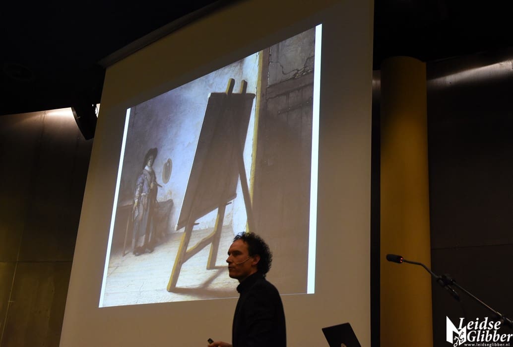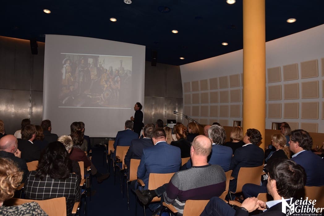 In een ruim half uur durende presentatie wist hij het publiek te boeien met verhalen over en achtergronden van het leven van onze beroemdste Leidenaar.