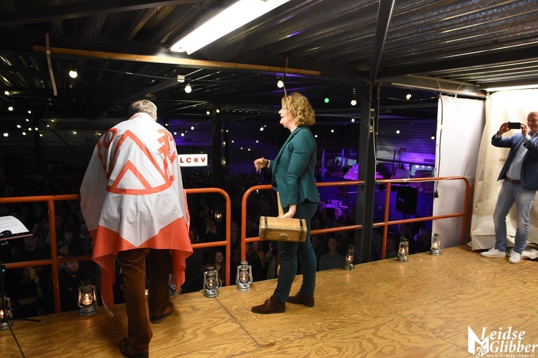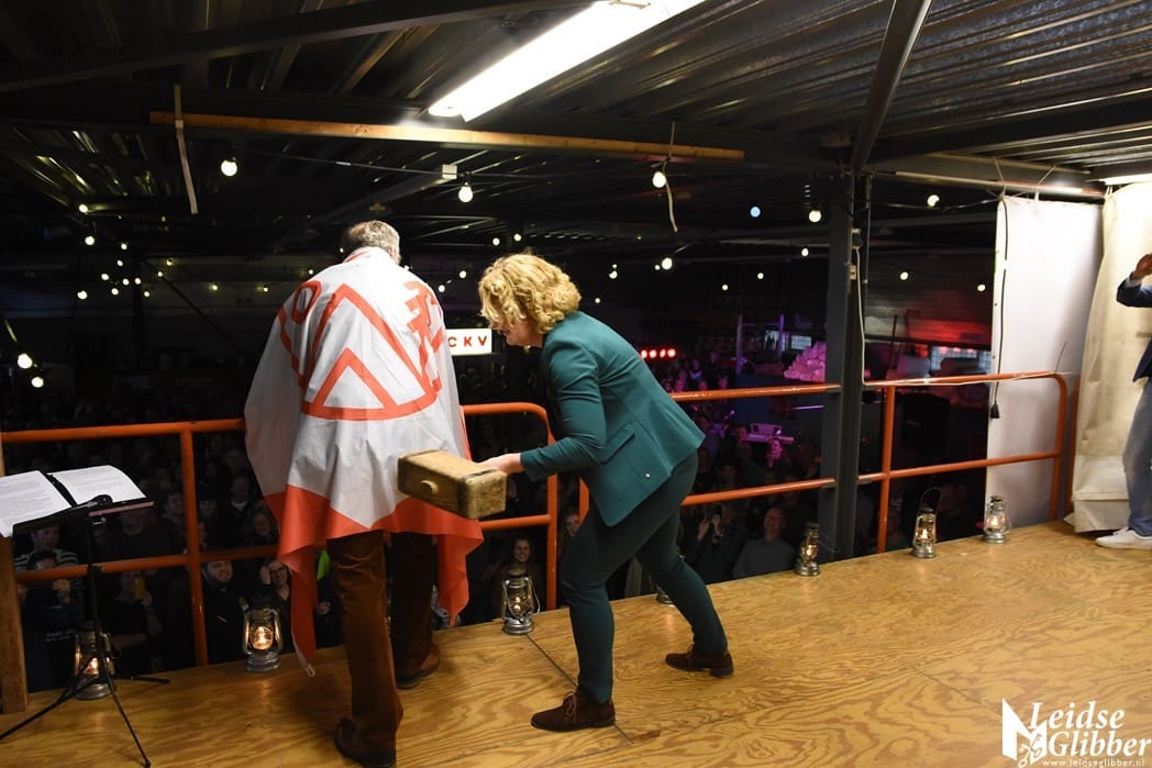 En ja hoor even later stond burgemeester Henri Lenferink op het podium, klaar om het laatste ritueel van de ontgroening te ondergaan.