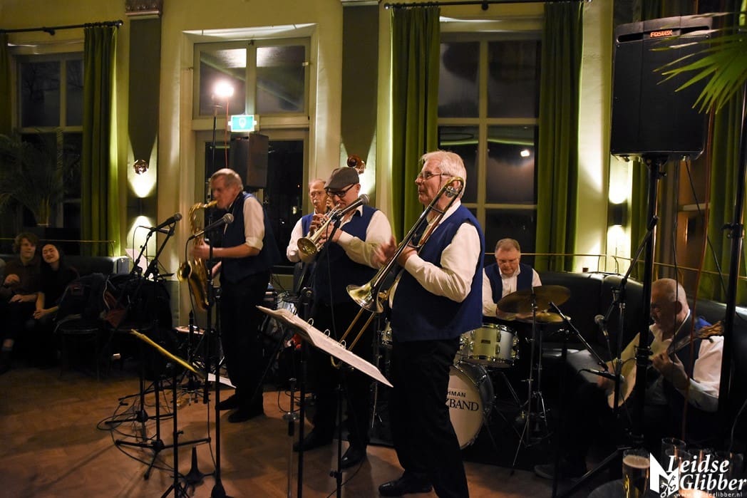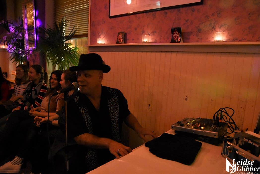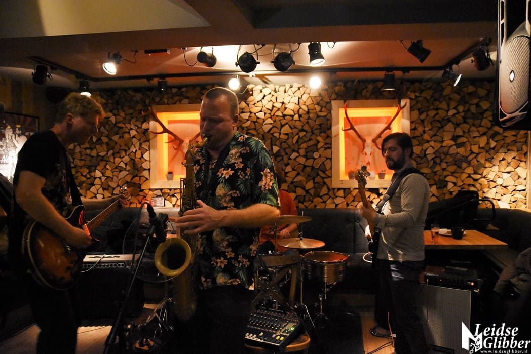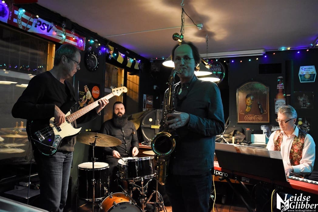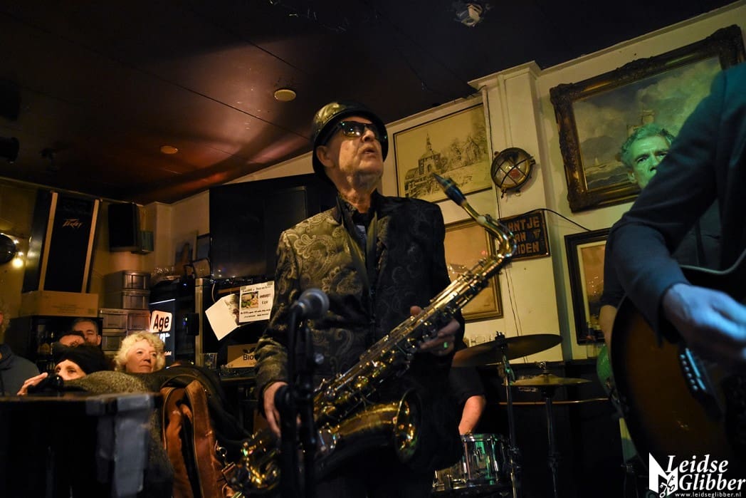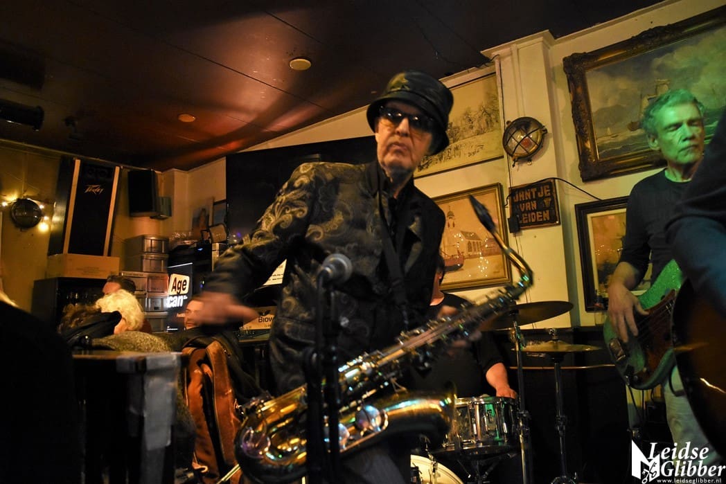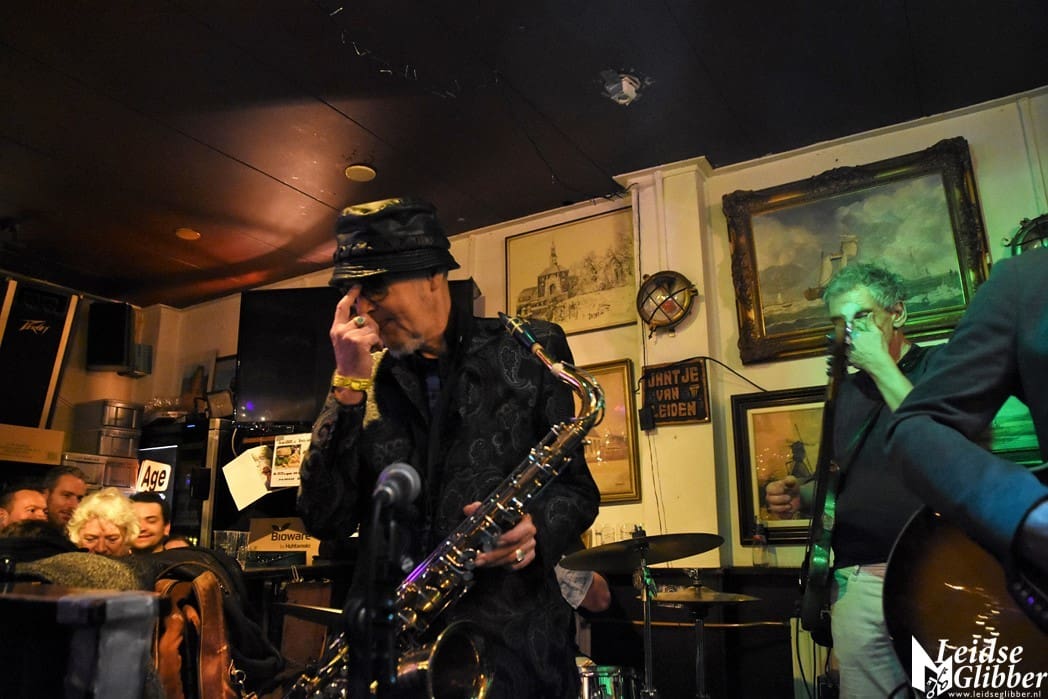 Jantje van Leiden staat altijd van voor tot achter en van links naar rechts vol. Nou is dat ook niet zo moeilijk want het is een klein café. Hoe klein het ook is, toch nog een hele klus om die paar meter tot het podium te overbruggen. Een stukje film van de Spieker Baars Bluesband met saxofonist Rinus Groeneveld mocht natuurlijk niet ontbreken.