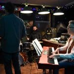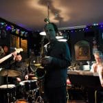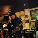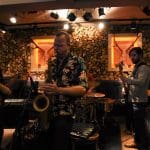 Schuin aan de overkant naar café Rembrandt. Hier was gekozen voor een zanger met nummers van Frank Sinatra, wat natuurlijk een heerlijke afwisseling is tussen al het blues en jazzgeweld.