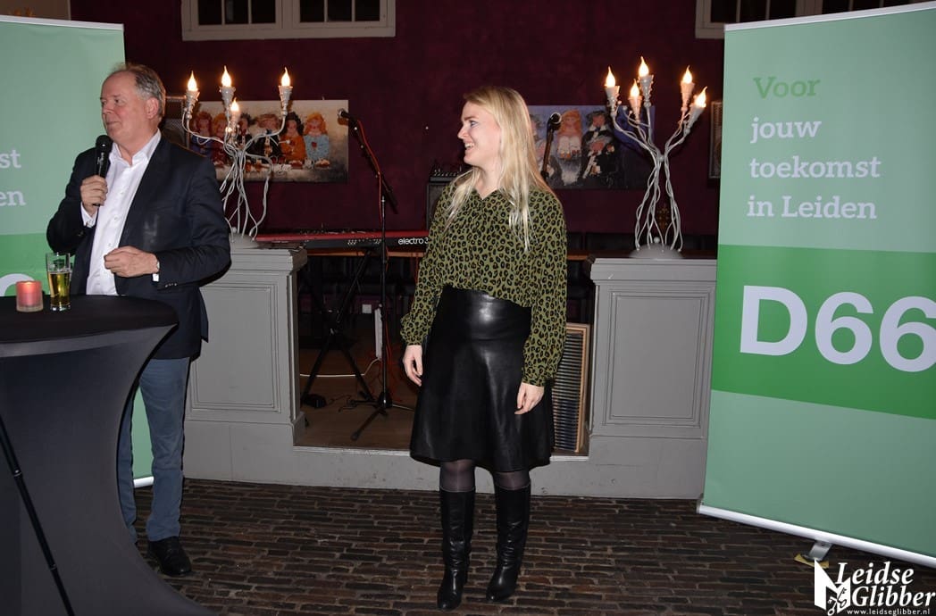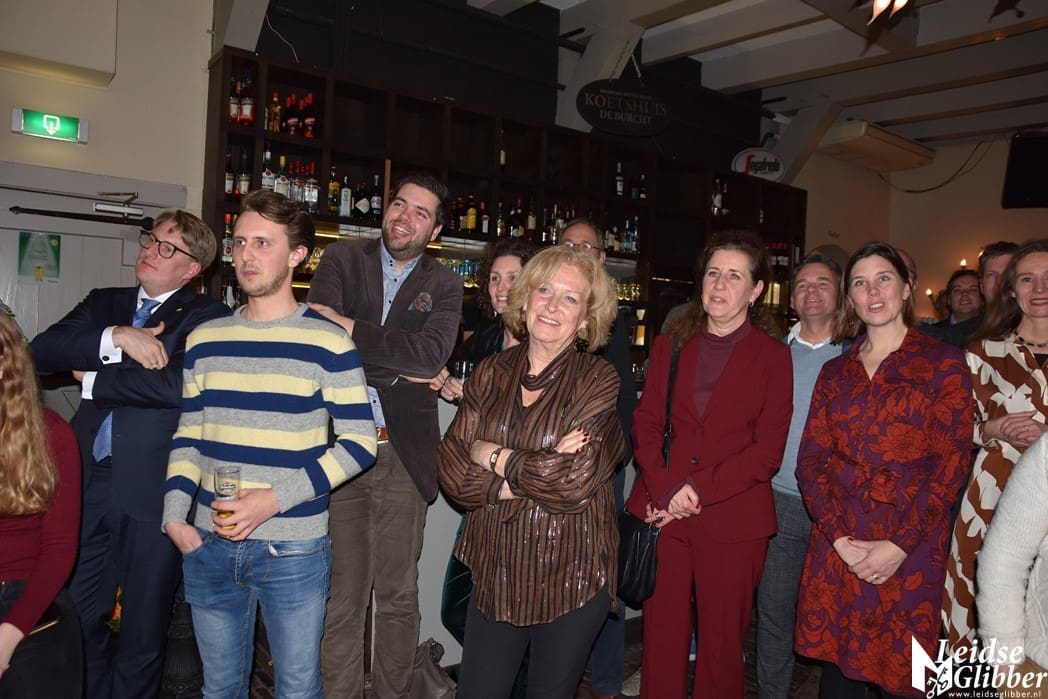 Deze borrel is een van de drukst bezochte borrels van de politieke partijen. Dit komt niet alleen door de verkiezing van het Raadslid van het jaar, maar ook omdat Leiden het grootste D66 bolwerk is. Er was gisteren ook belangstelling uit Den Haag en Brussel. Minister Ingrid van Engelshoven en europarlementariër Sophie in ’t Veld waren naar Leiden gekomen en gezellig in gesprek met tweede Kamerlid Paul van Meenen.