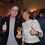 Helaas was Martijn uitgerekend vandaag ziek en kon zijn prijs niet in ontvangst nemen. Partijgenoten duo raadslid Marc Newsome en wethouder Marleen Damen namen zijn prijs in ontvangst en gaan snel op ziekenbezoek 🙂