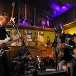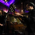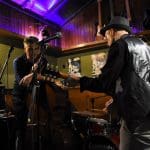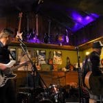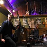 De gitarist weet de mooiste solo’s uit zijn gitaar te halen en daar klinkt het zware contrabas geluid heerlijk bij.