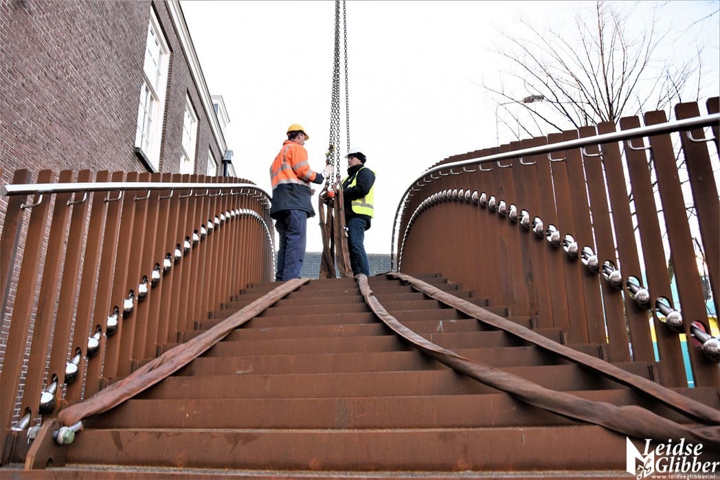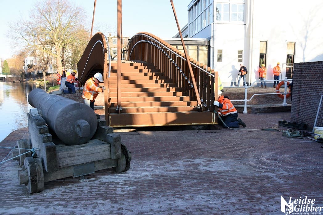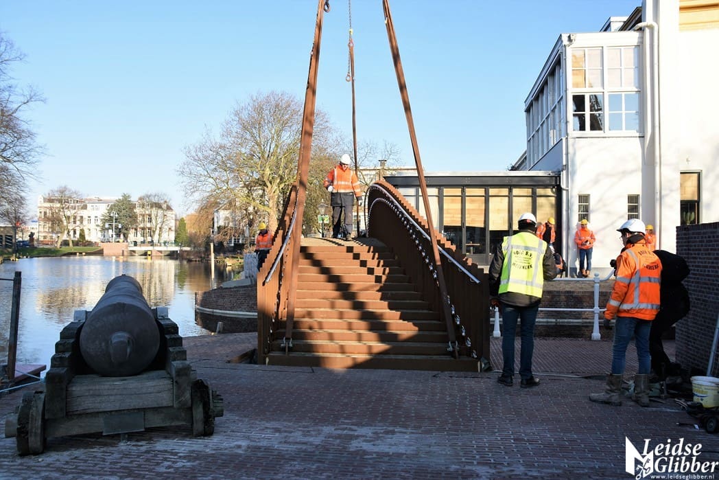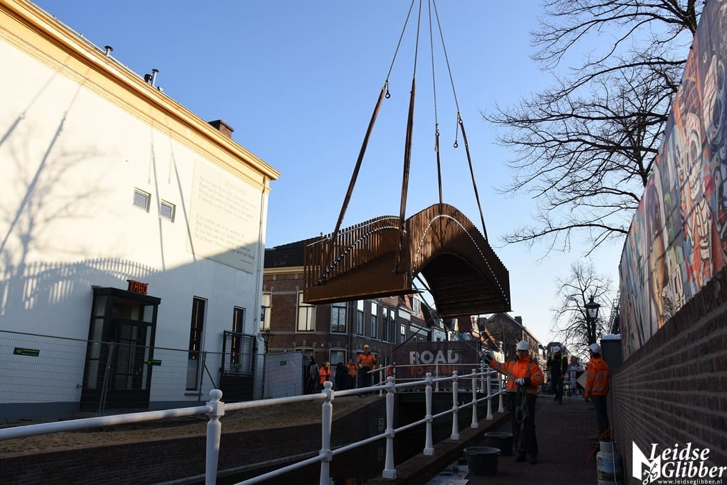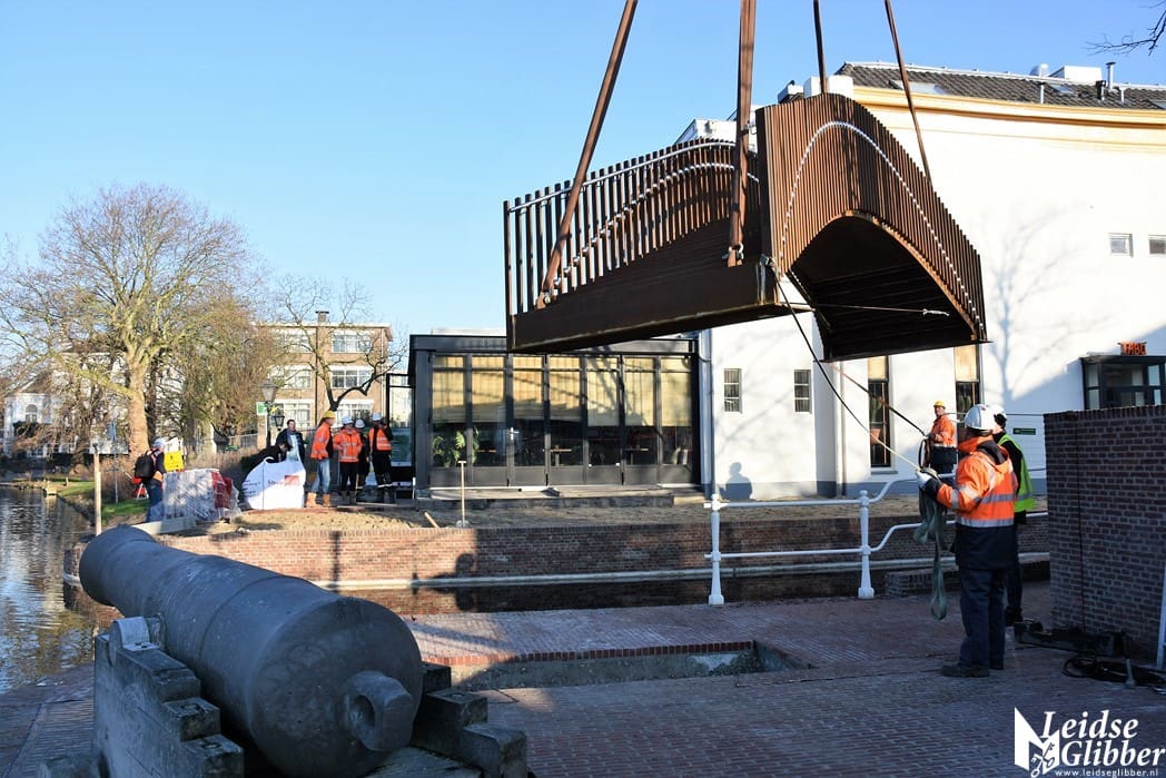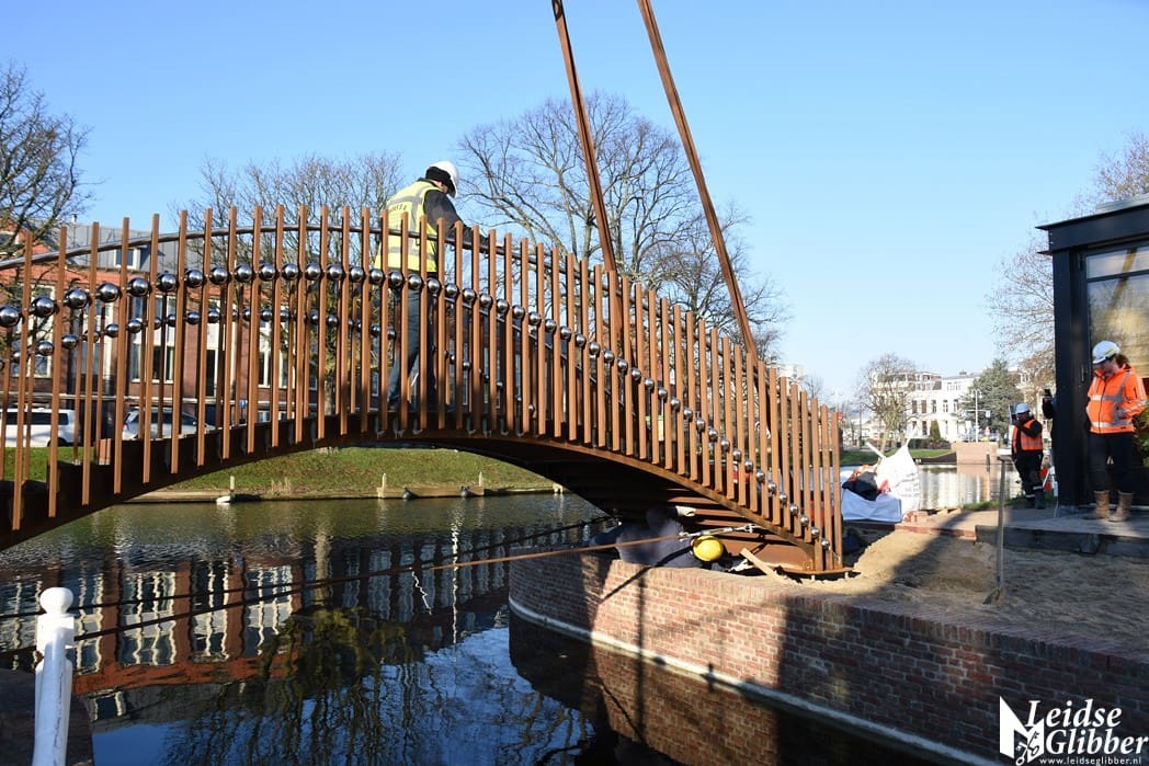 Home LeidenAeldisbrug, de eerste van vijf Singelparkbruggen is vandaag geplaatst