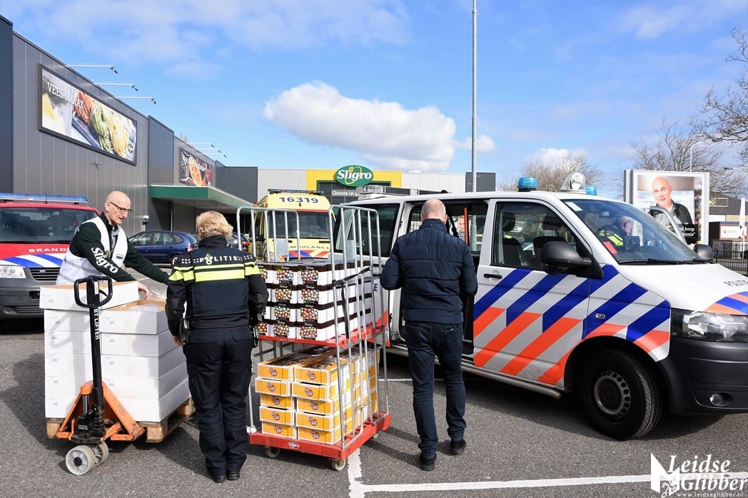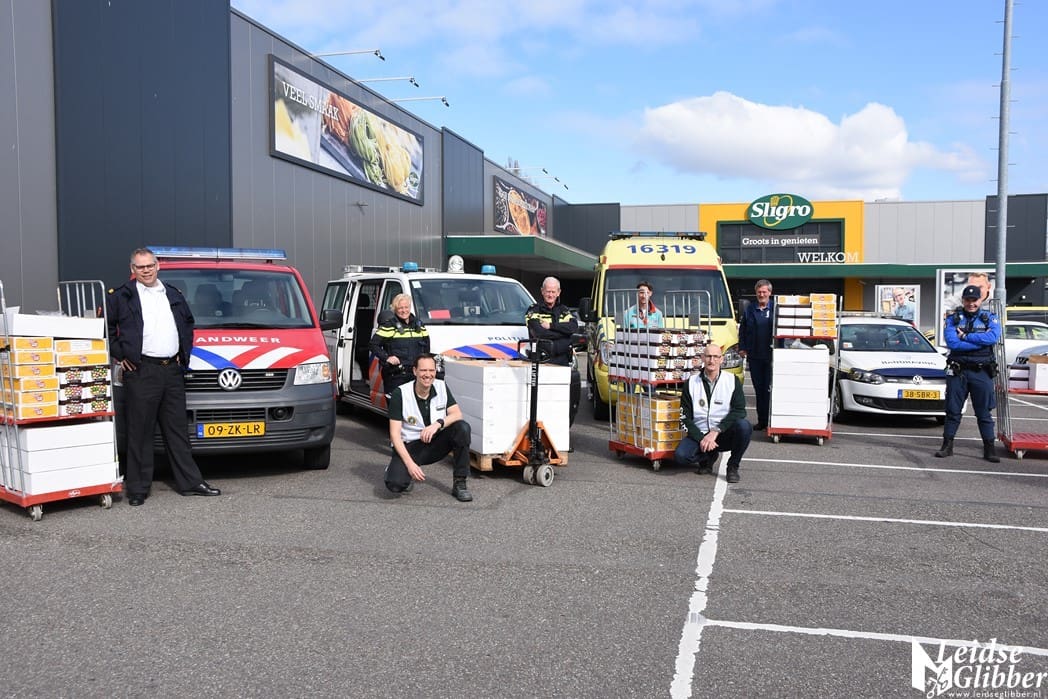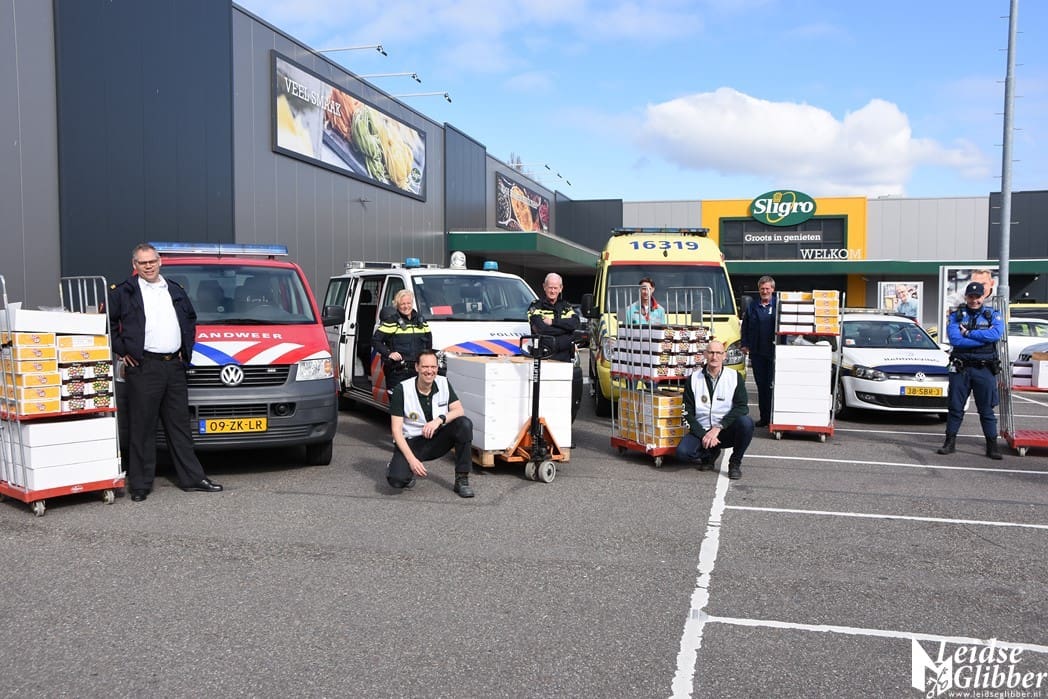 Arno de Jong, manager Sligro Leiden, laat al elke dag fruit naar onder andere het Alrijne ziekenhuis brengen, maar wilde ook graag iets doen voor de harde werkers van de hulpdiensten. Hij sprak Arthur Haasbroek van Brandweer Hollands Midden en vroeg wat hij zou kunnen doen. Nou een chocolaatje is nooit weg zei Arthur lachend.  Als jij de hulpdiensten regelt dan zorg ik voor chocola beloofde Arno. Uit ervaring  ( kaas en worst tijdens 3 octoberoptocht bij Café de Plantage) weet ik dat als Arno zoiets beloofd het geen half werk is en ook geen reclamestunt, maar recht uit zijn hart komt.