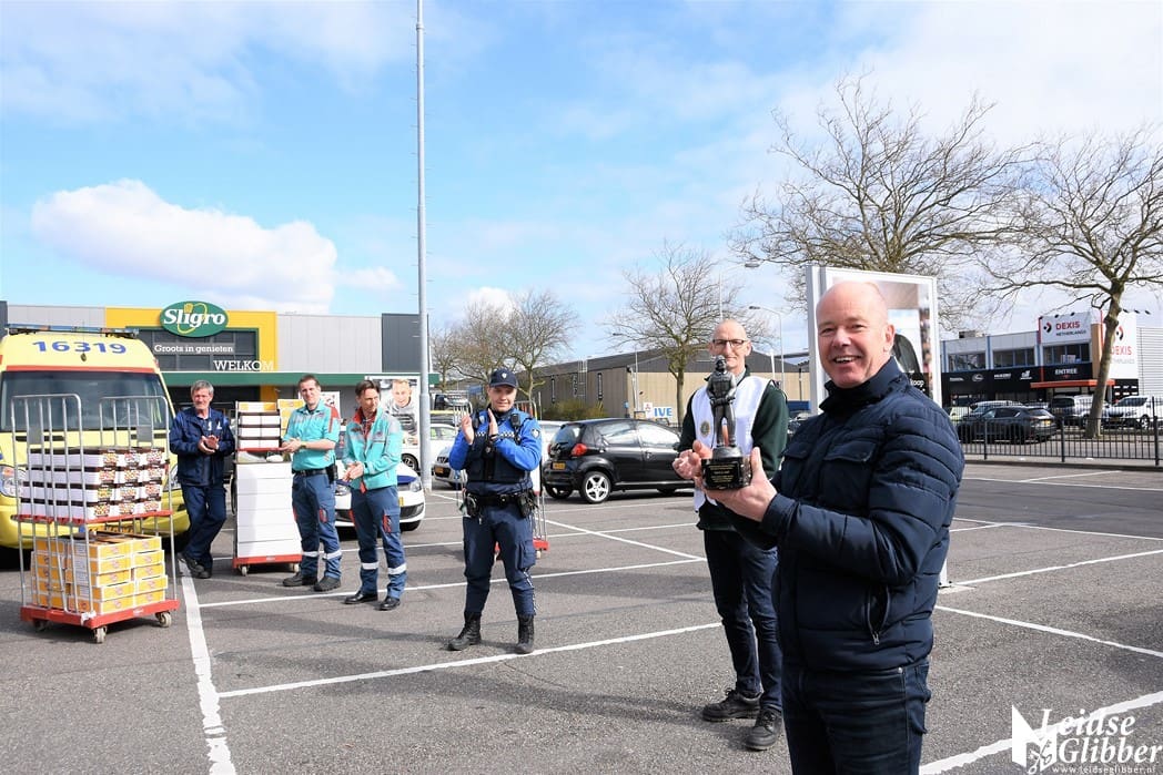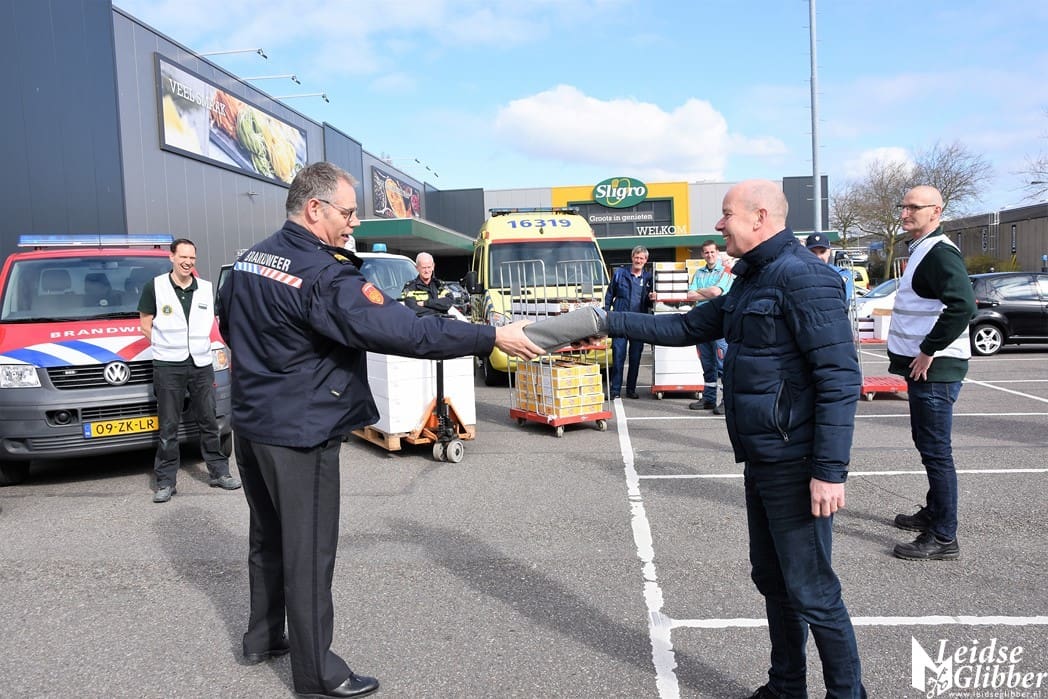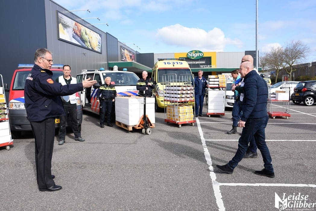 Arno sprak zijn waardering uit voor de medewerkers van de diverse hulpdiensten en hoopte dat deze traktatie een beetje gezelligheid brengt in deze drukke tijden.