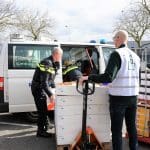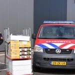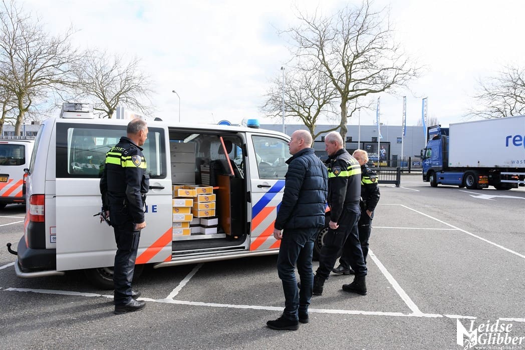 De wagens werden volgeladen om daarna op de verschillende bureau’s en kazernes verdeeld te worden.