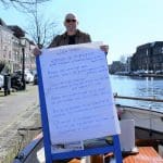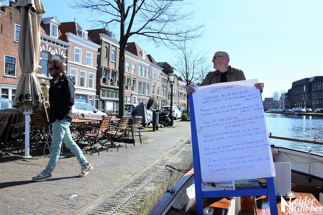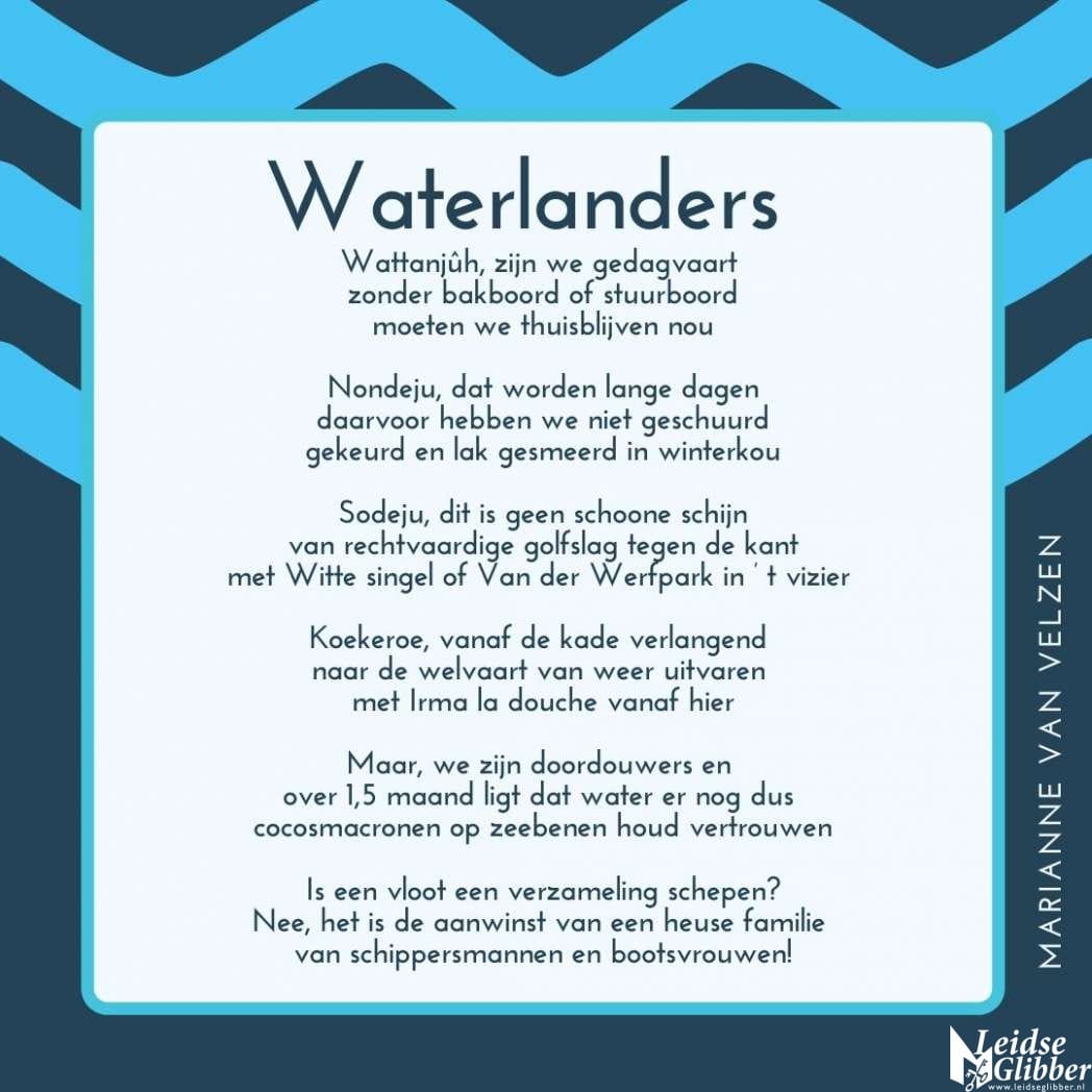 Gelukkig heeft Leiden een heel goede en enthousiaste Stadsdichter. Toen Marianne van Velzen gevraagd werd een gedicht te schrijven met als onderwerp dat het vaarseizoen niet geopend ging worden, zei ze direct ja dat doe ik.
