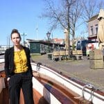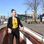 Ik had het toevallig gisteren over het Leids één en één is twee principe en snelle schakelen. Dit is daar ook weer zo’n voorbeeld van.  Ik belde donderdagmorgen om half 12 Marianne op of ze het wilde doen, bracht haar vervolgens in contact met Daaf van de Rederij en om een uur kreeg ik een appje van Daaf dat ze ruim een half uur gesproken hadden en ze aan de slag ging. Zaterdagmorgen om half twaalf droeg ze aan boord van de Sodeju haar gedicht ‘Waterlanders’ voor.