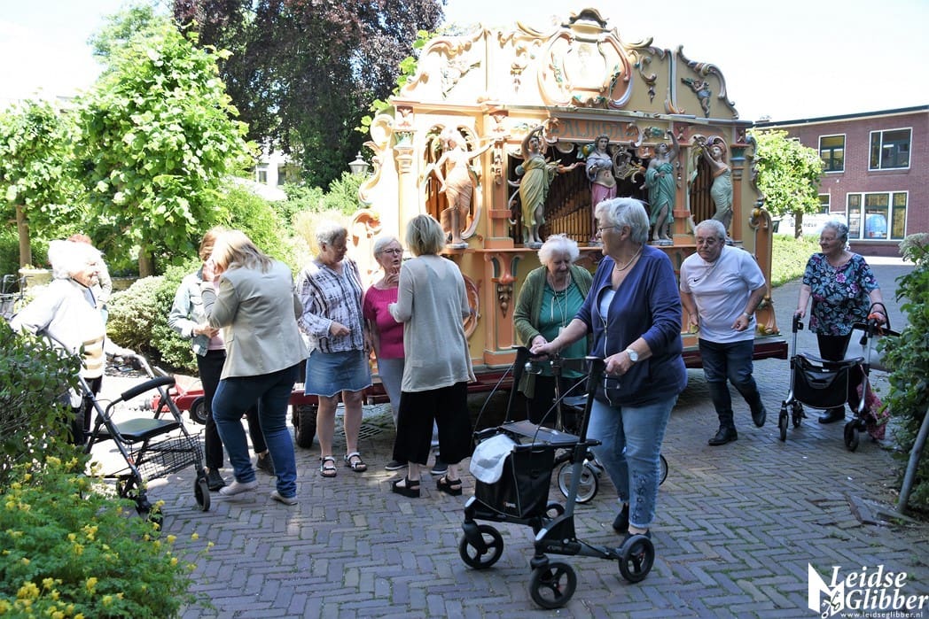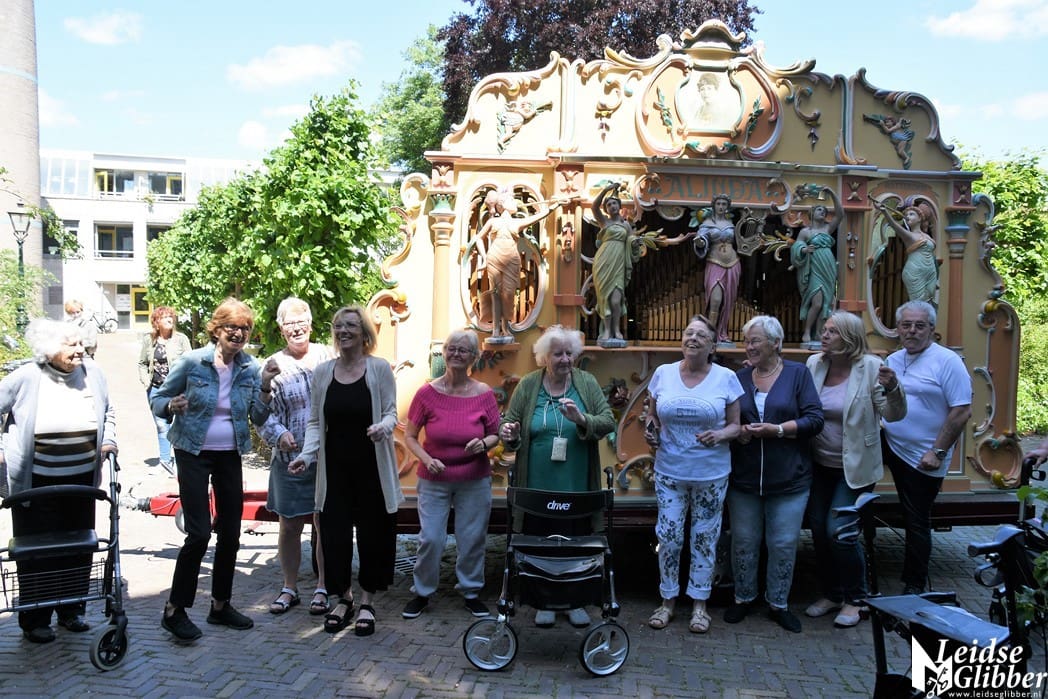 Er kwamen steeds meer bewoners naar buiten en natuurlijk even met een aantal bewoners poseren bij het draaiorgel.
