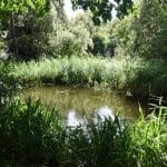 Het is maar goed dat het rustig is in het Heempark. Als je netjes en zonder nadenken in deze coronatijd een stap opzij zou doen als er een tegenligger aankomt, dan verdwijn je tussen het riet in de sloot aan weerskanten.