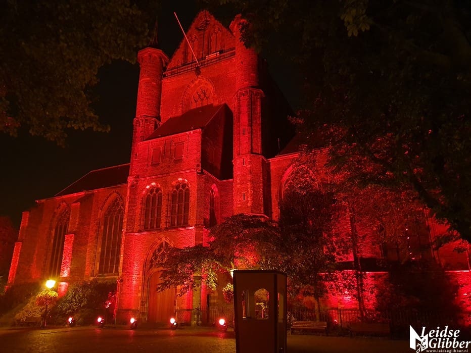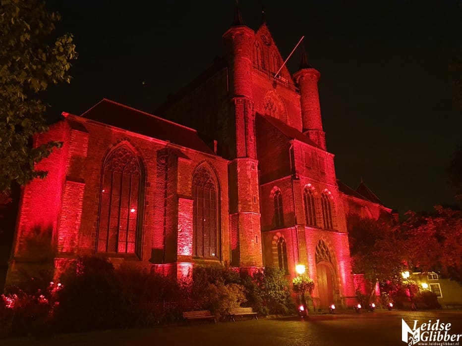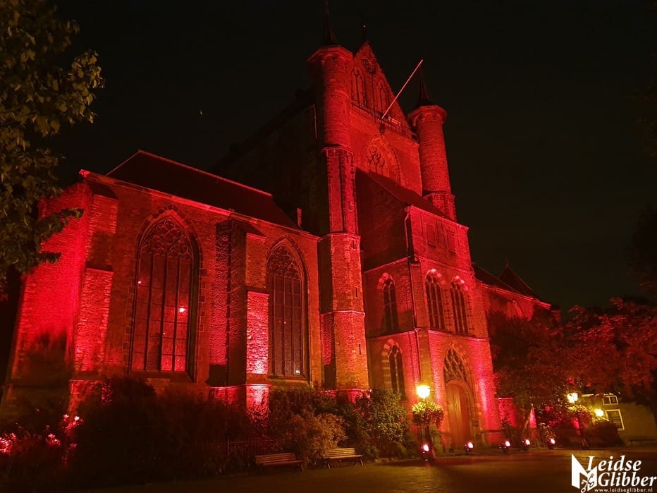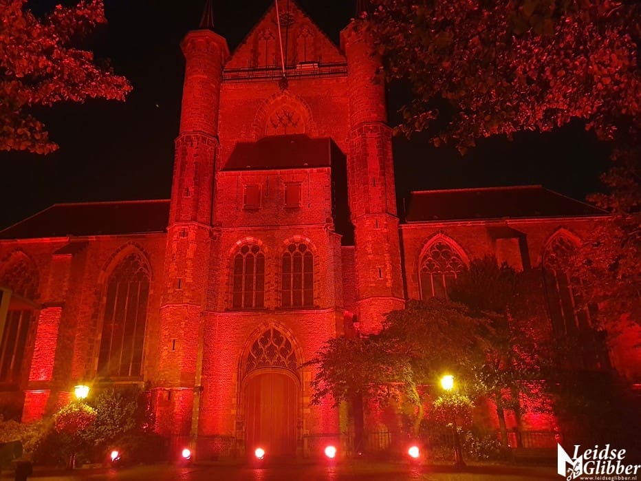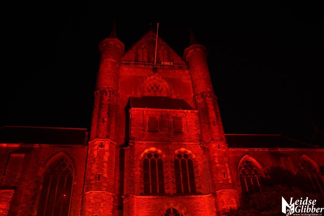 In Leiden werd de Pieterskerk in de rode Red Alert schijnwerpers gezet door Flow Sound, het bedrijf dat alle licht en geluid in de Pieterskerk verzorgt.