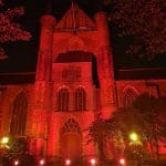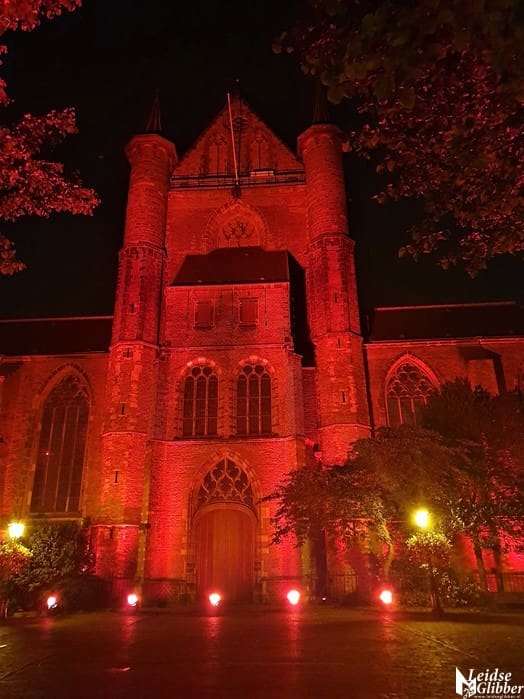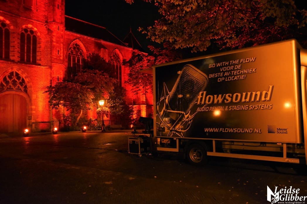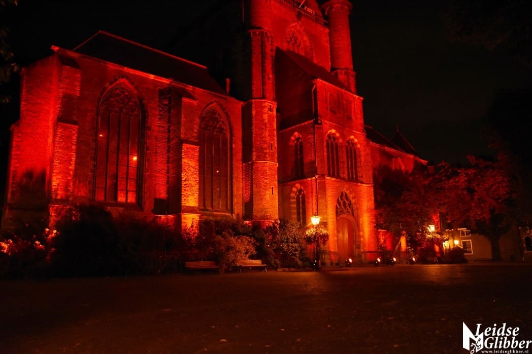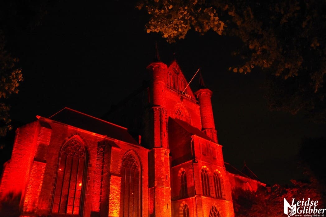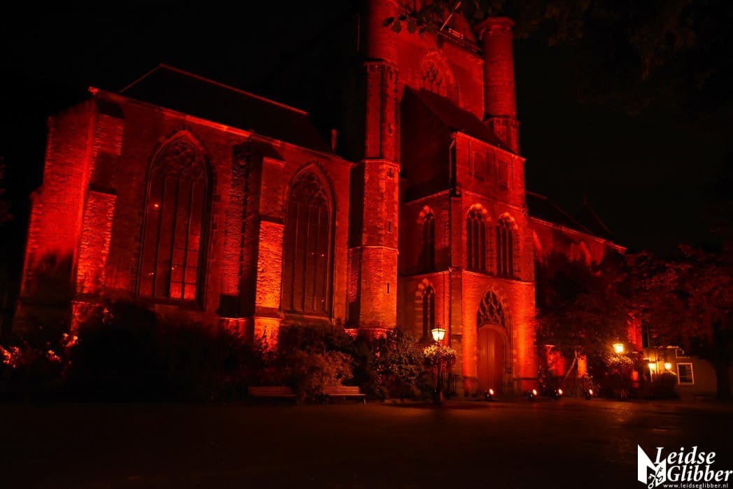 In Leiden werd de Pieterskerk in de rode Red Alert schijnwerpers gezet door Flow Sound, het bedrijf dat alle licht en geluid in de Pieterskerk verzorgt.