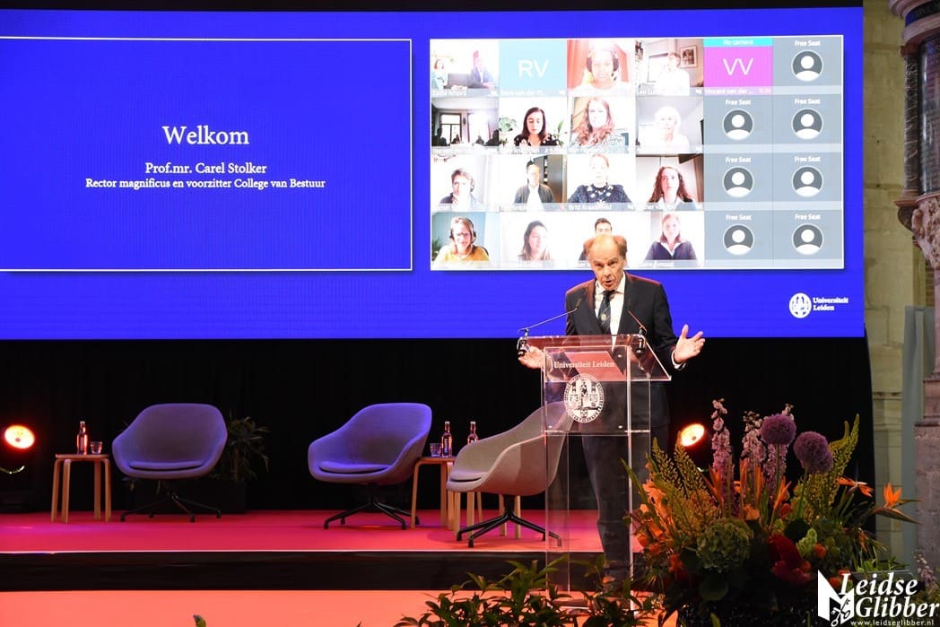 Voor rector magnificus Carel Stolker was het de laatste keer dat hij de openingsrede hield, volgend jaar neemt hij afscheid en wordt opgevolgd door Hester Bijl.
