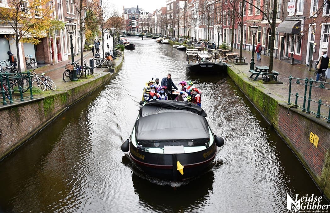 Mij maak je niets wijs, als er één Piet over de brug is volgen er meer. En ja hoor zie je wel mijn gevoel en het spreekwoord hadden het goed. Een stukje verderop zag ik een boot vol Pieten varen. Hoi zijn jullie in Leiden. Ssssst nee, straks pas riepen ze terug.