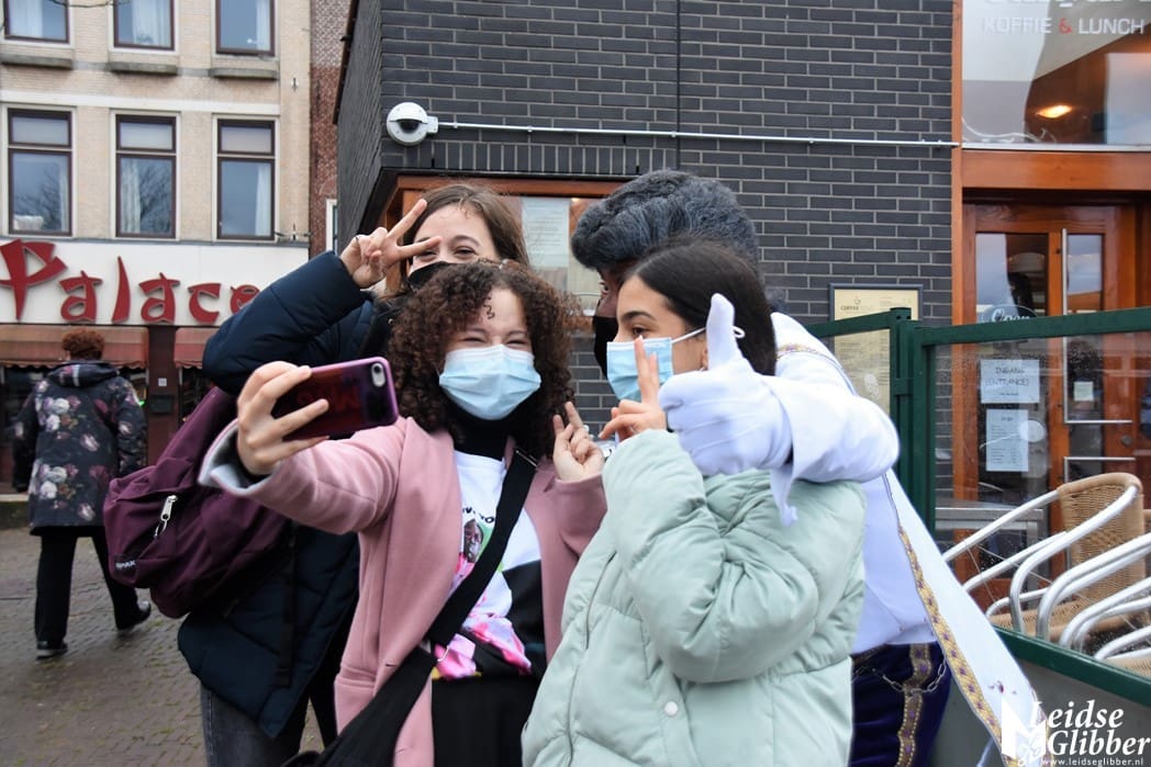 Sinterklaas mag ik nog even snel een groepsfoto maken, maar dan moeten de Pietjes wel anderhalve zak afstand houden.