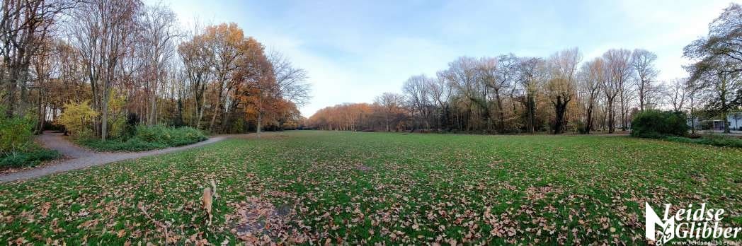 Een panoramafoto van het grote veld geeft wel aan hoe mooi het is en uiteraard heerlijk als hondenlosloop terrein.