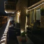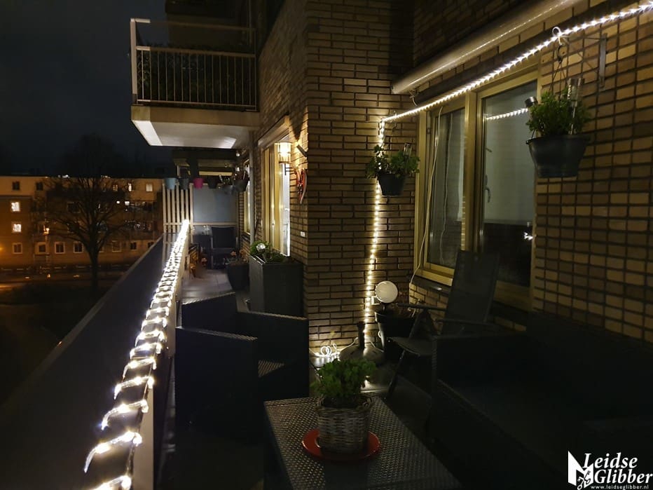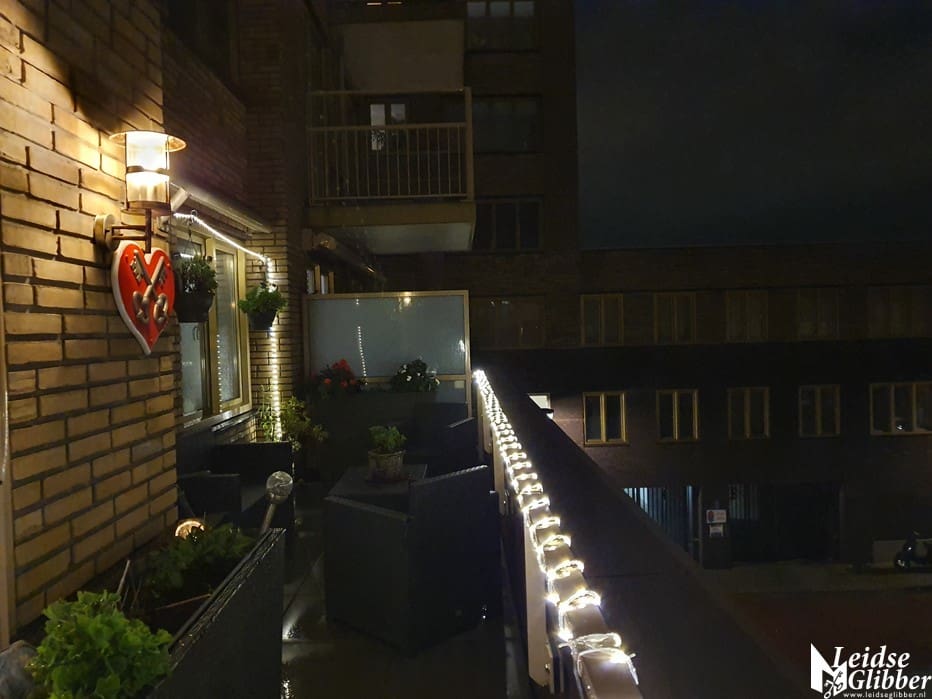 Ik liet Happy uit en dacht, eigenlijk moet het licht op het terras ook zo snel mogelijk weg.