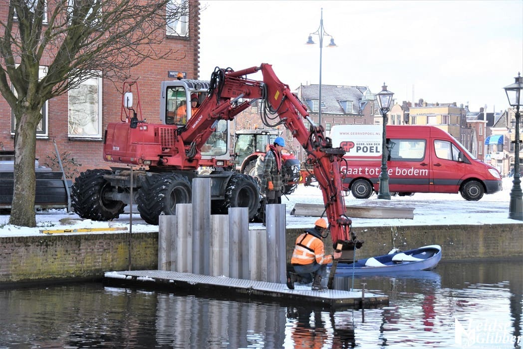 Vanmorgen werd begonnen met schotten te plaatsen in de Singel.