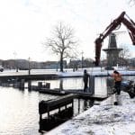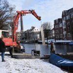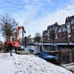 Het warme water komt terecht in de Maresingel waardoor het water in de Leidse grachten moeilijk bevriest.
