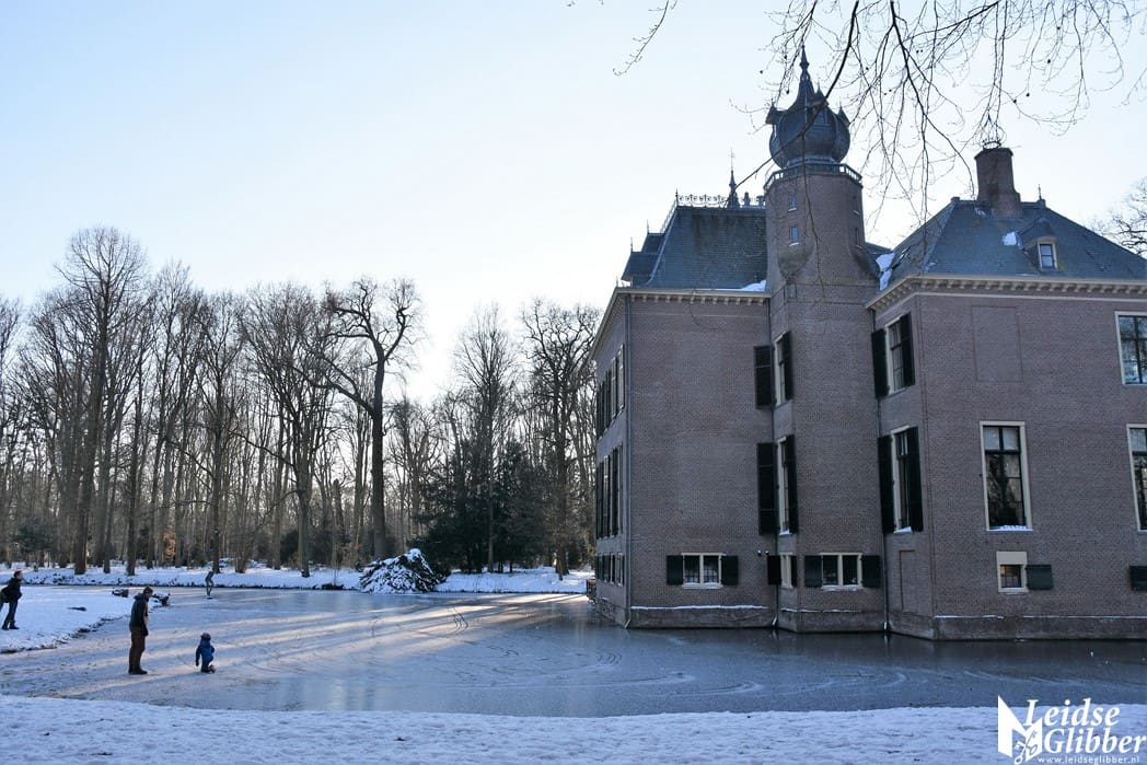 Dinsdag lag er nog geen ijs op de vijver rondom het kasteel.