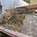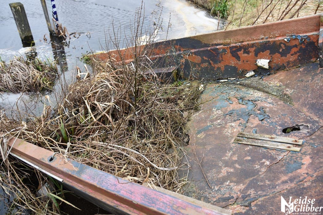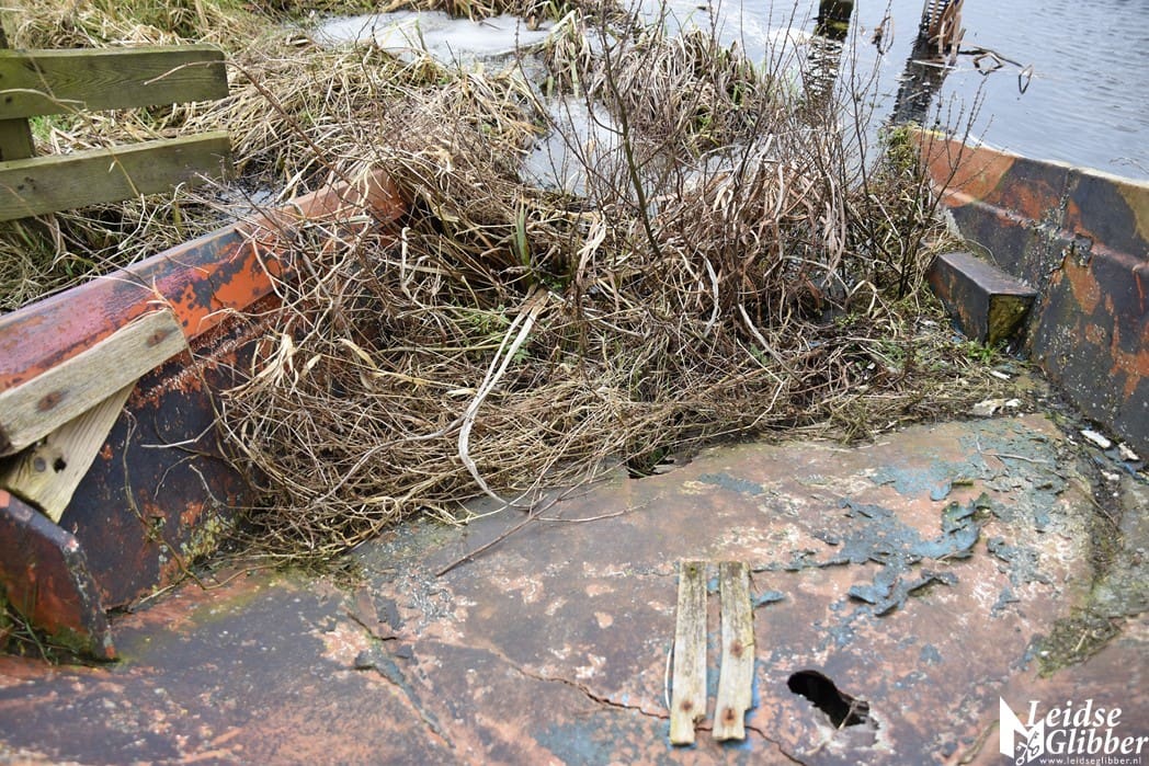 Een gedeelte van de bodem is al weggeroest, ik denk als het bootje hier nog een paar jaar blijft liggen hij totaal is weggeroest en de natuur de laatste resten overwoekert.
