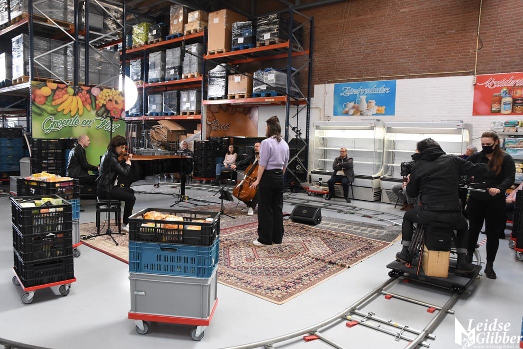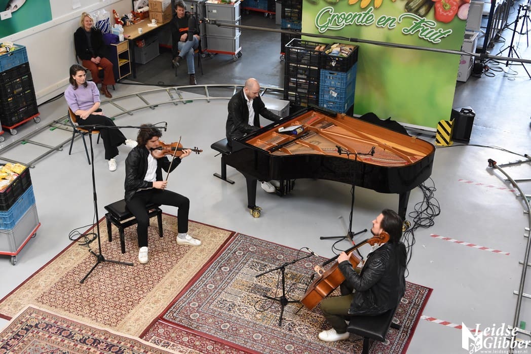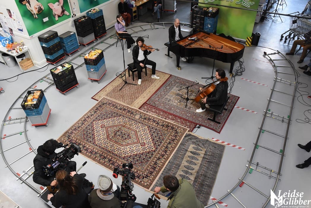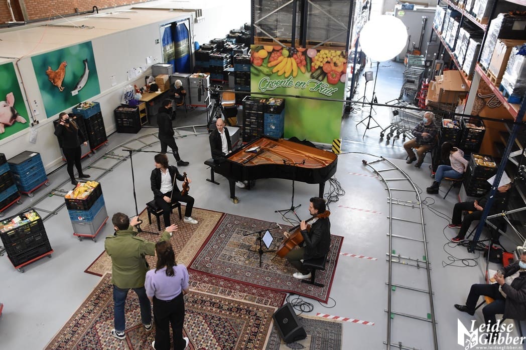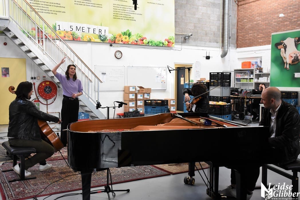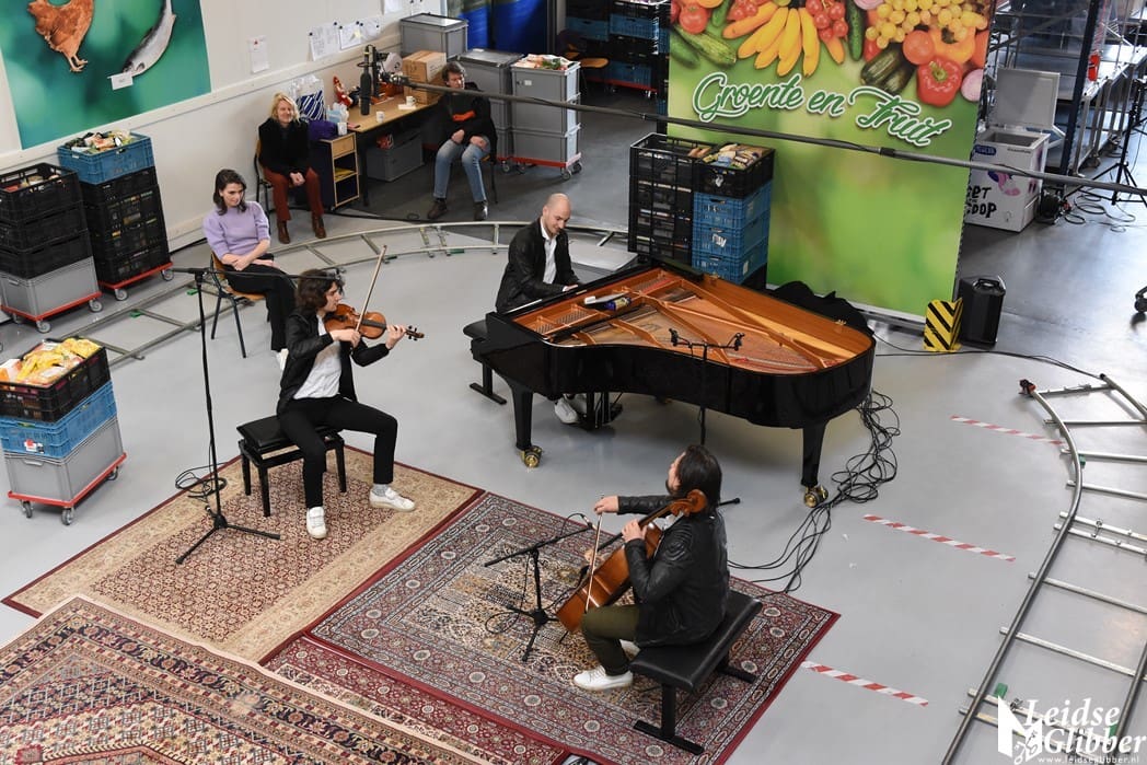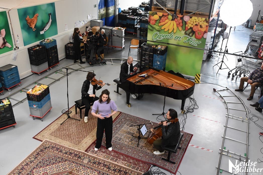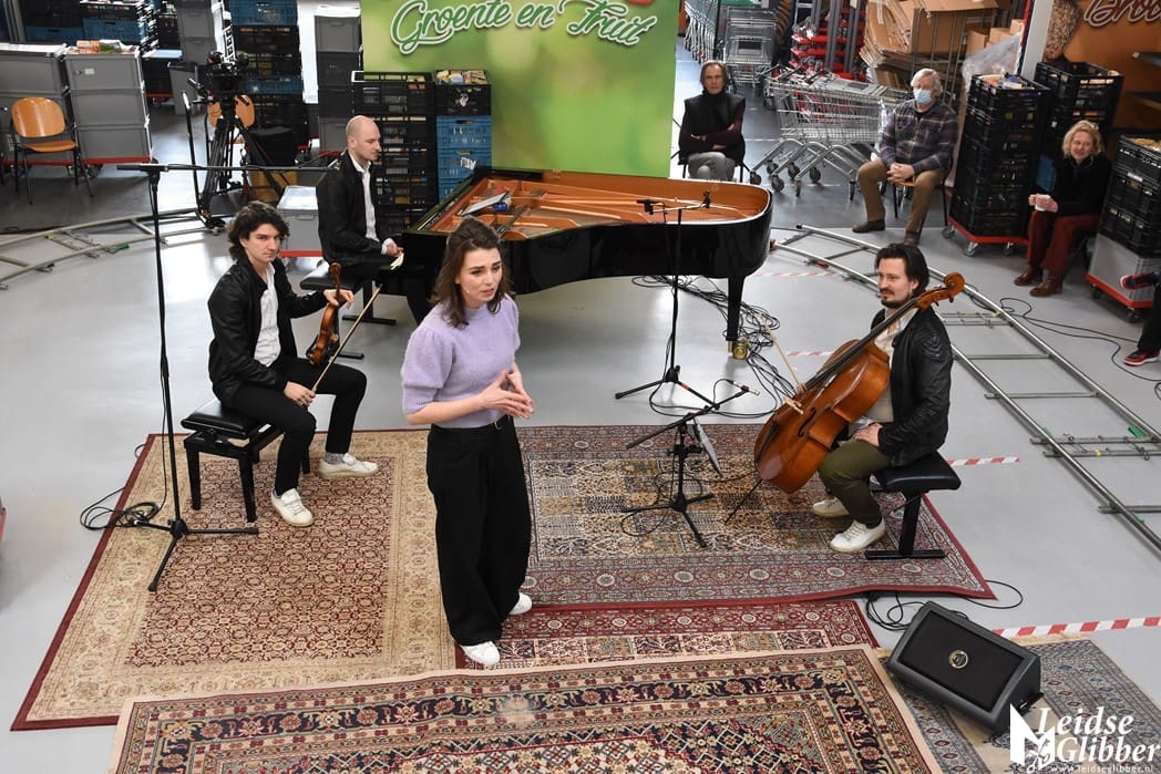 De komende weken is elke zaterdag na Nieuwsuur het programma Podium Pop Up te zien. Het zijn een serie mini-concerten waarin musici met een verschillende achtergrond, die vanwege de crisis veel projecten zien verdampen, gezamenlijk optreden op een bijzondere locatie. Cabaretière Louise Korthals wilde graag optreden met piano trio D’Encore en had gekozen voor de Voedselbank om de medewerkers van de Nederlandse Voedselbanken een hart onder de riem te steken.