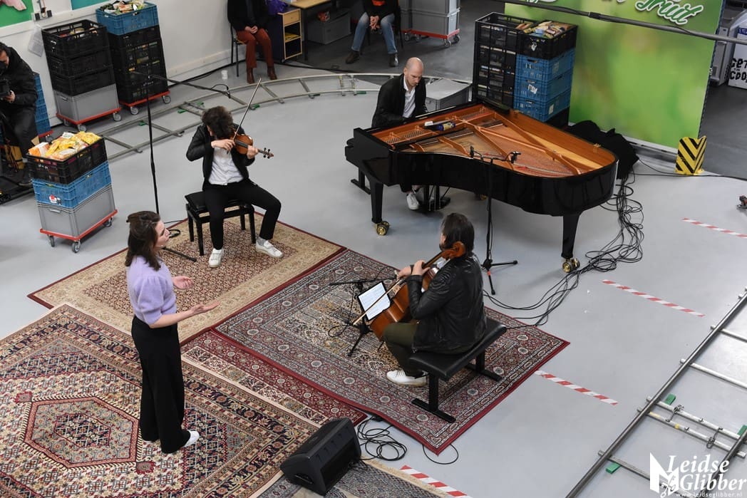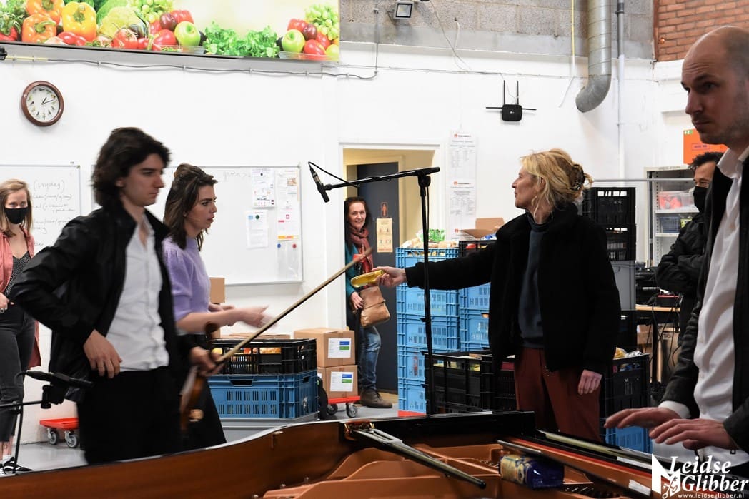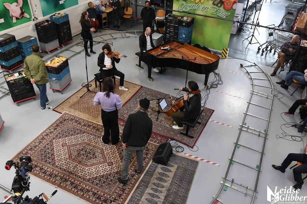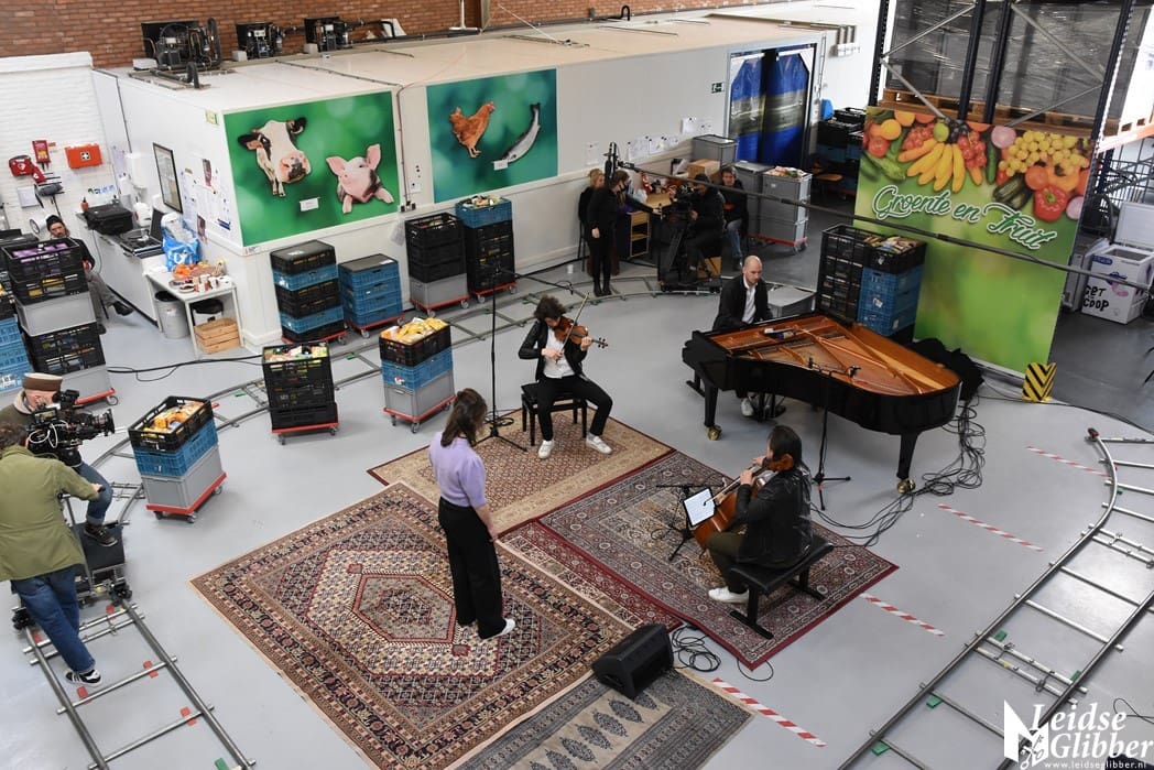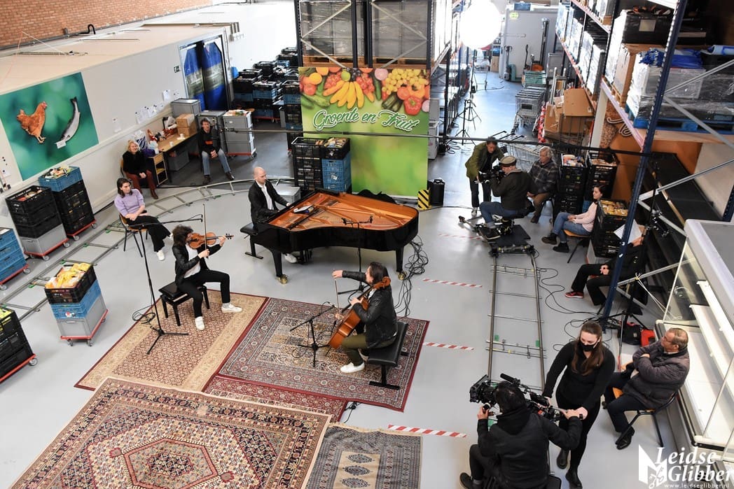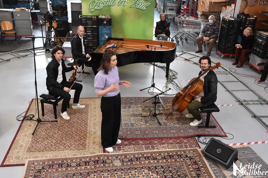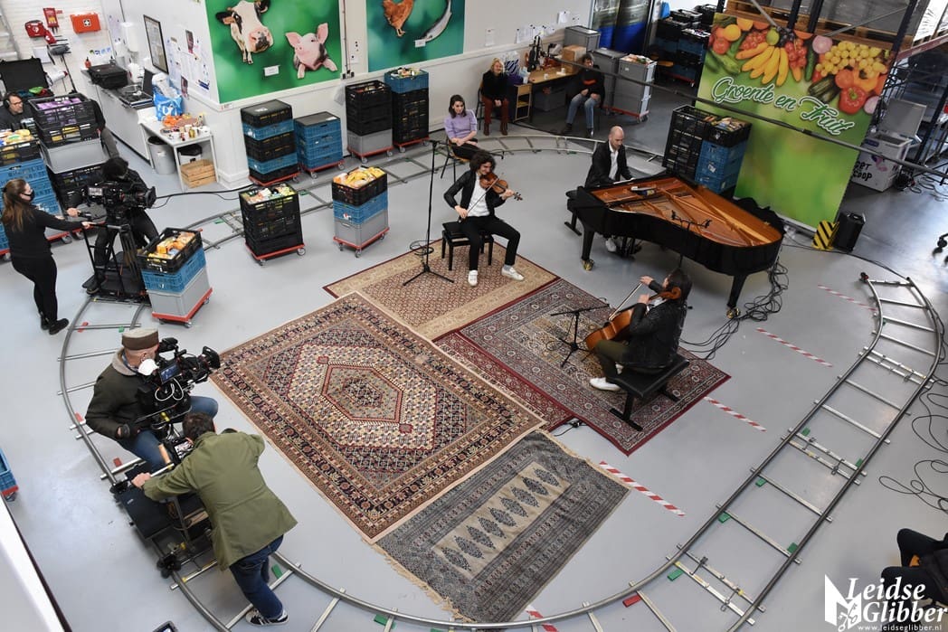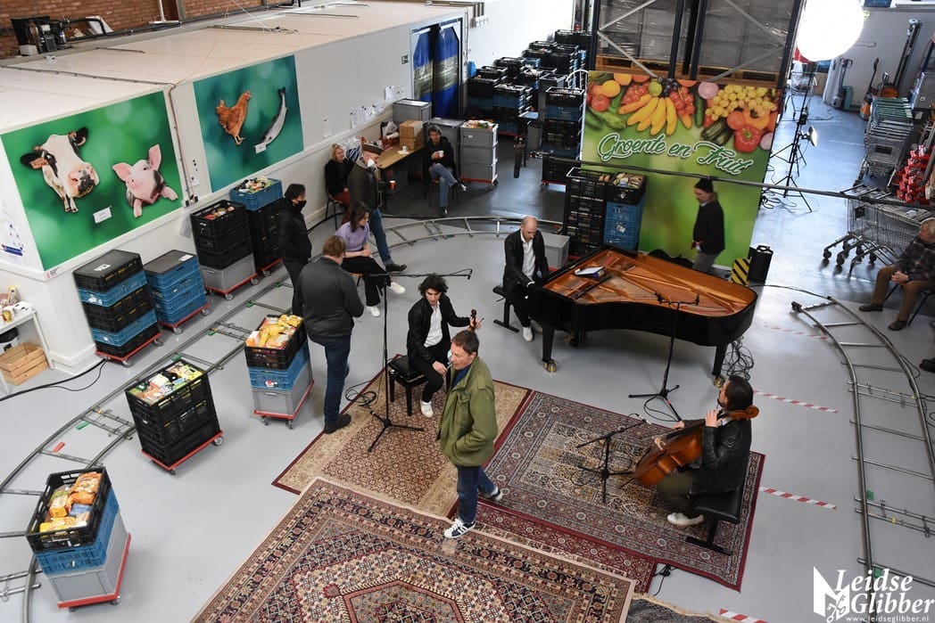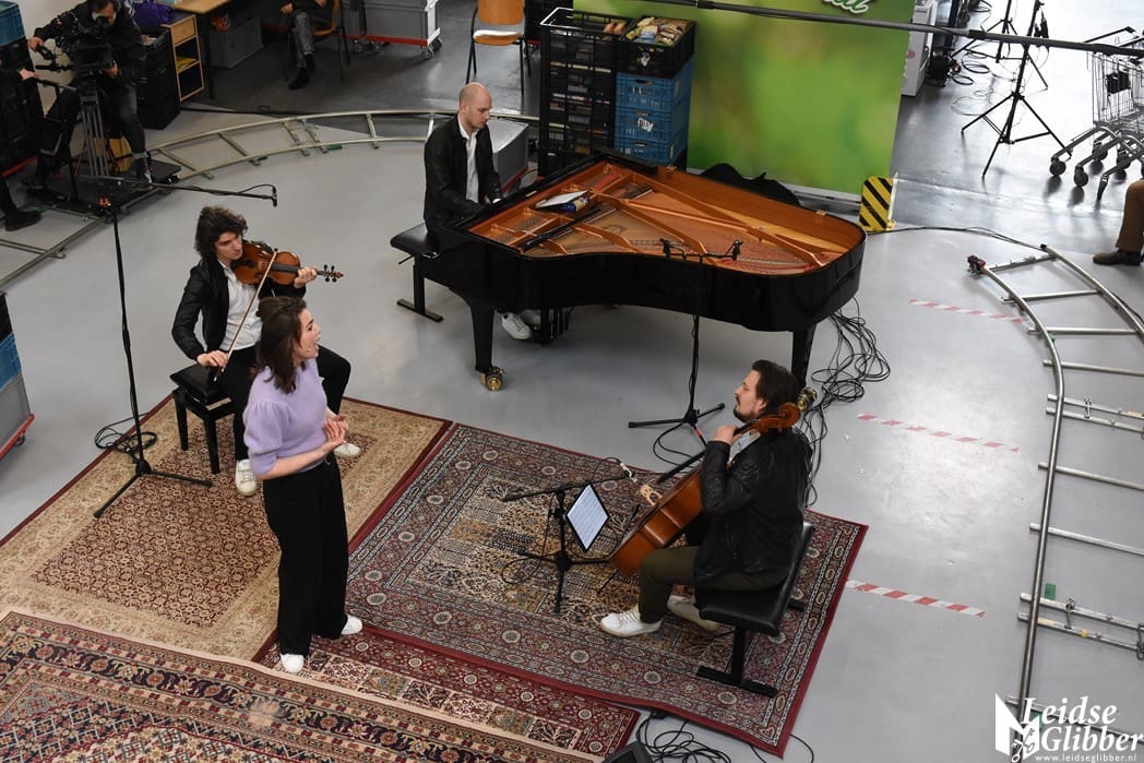 De komende weken is elke zaterdag na Nieuwsuur het programma Podium Pop Up te zien. Het zijn een serie mini-concerten waarin musici met een verschillende achtergrond, die vanwege de crisis veel projecten zien verdampen, gezamenlijk optreden op een bijzondere locatie. Cabaretière Louise Korthals wilde graag optreden met piano trio D’Encore en had gekozen voor de Voedselbank om de medewerkers van de Nederlandse Voedselbanken een hart onder de riem te steken.
