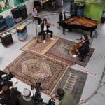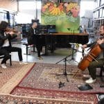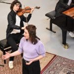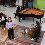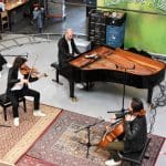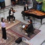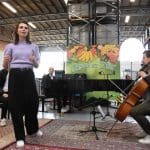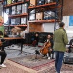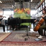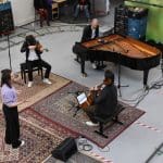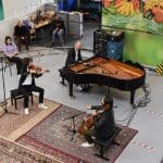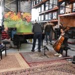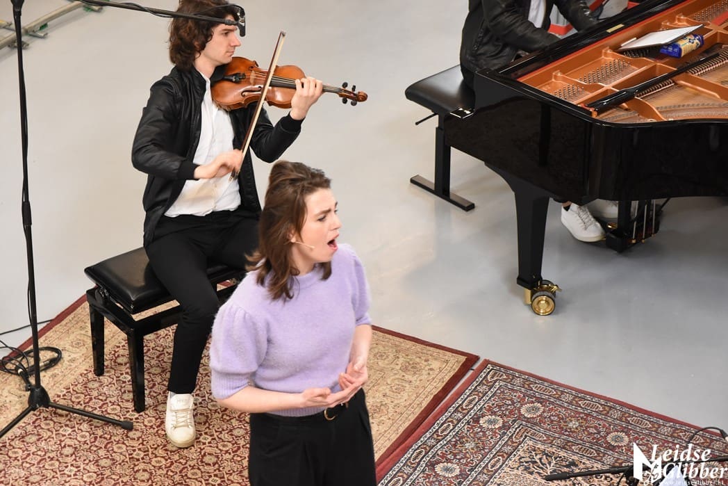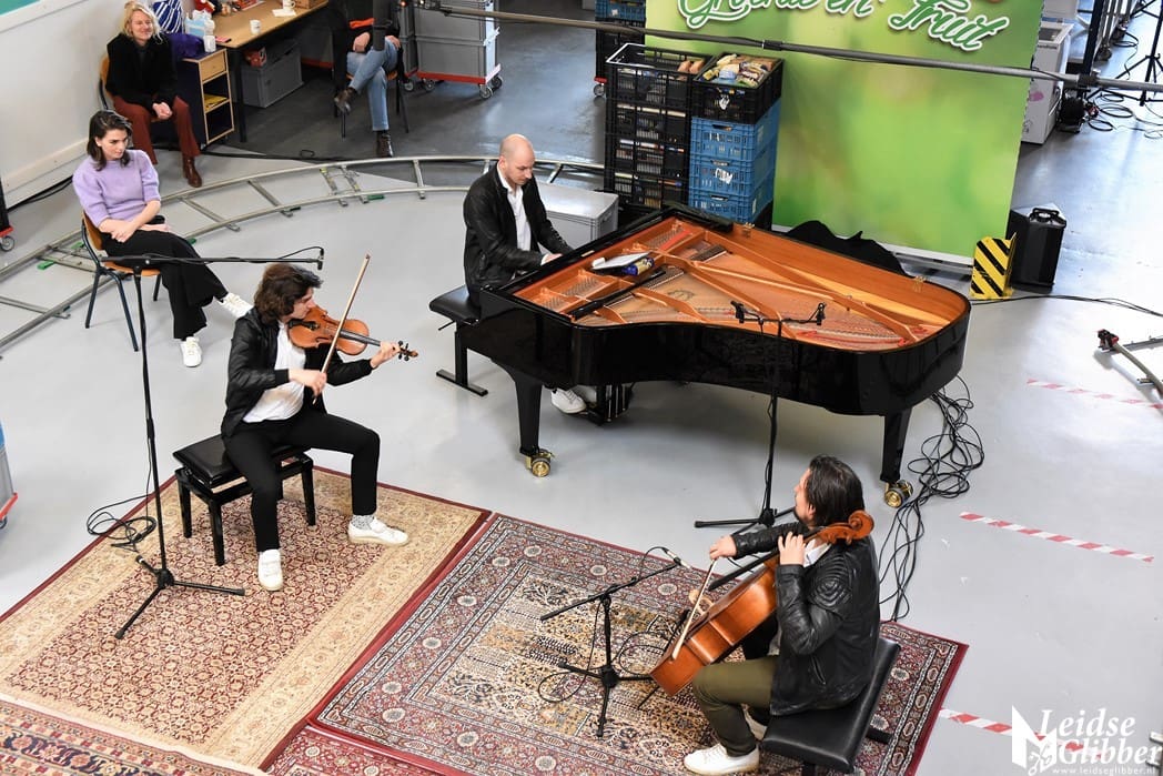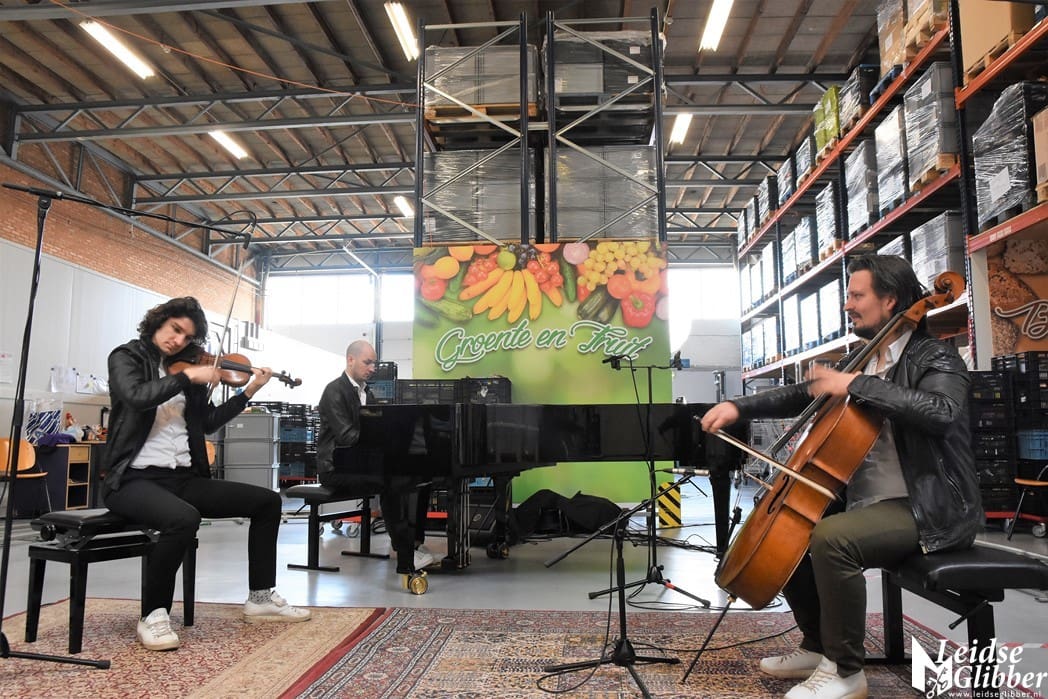 De muzikanten konden vast gaan zitten en even inspelen. Trio D’Encore bestaat uit Casper Vos op piano, viool Koen Stapert en Marcus van den Munckhof op cello.