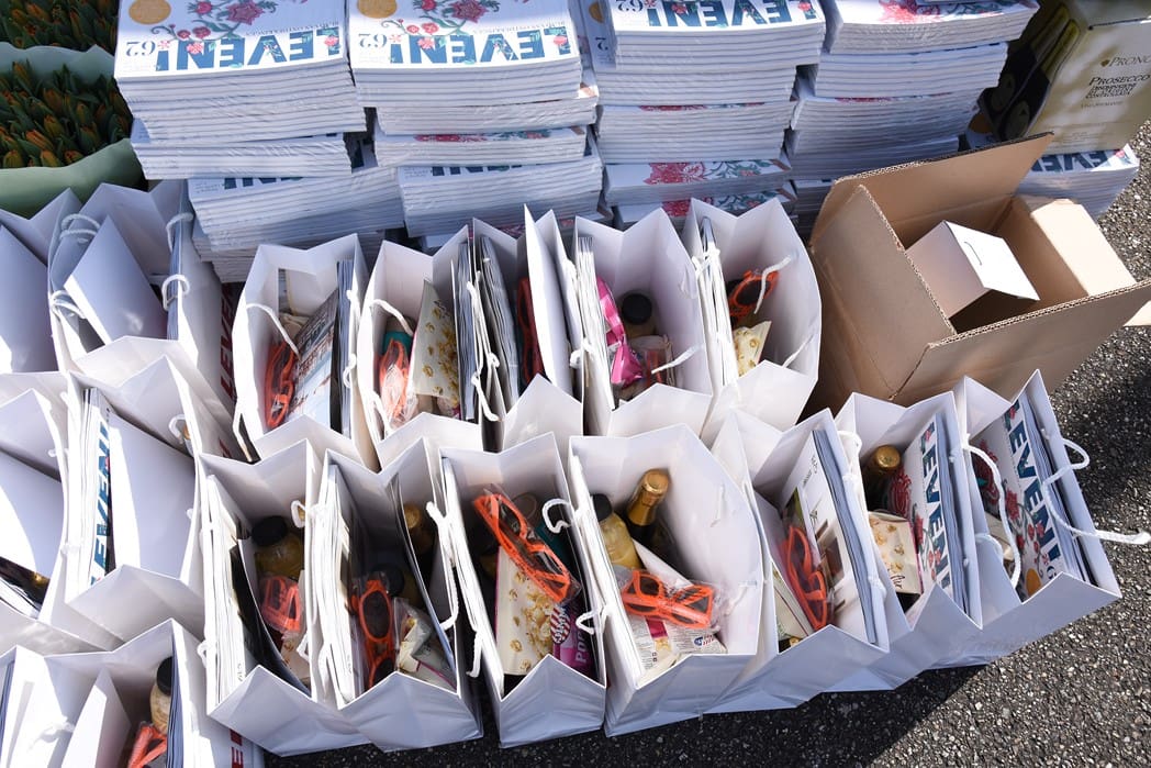 Geen feestje maar de bedoeling was dat de genodigden langs reden en een goodiebag plus een stapeltje LEVEN Magazine s meenamen. De goodiebags stonden gevuld en wel klaar voor de gasten.