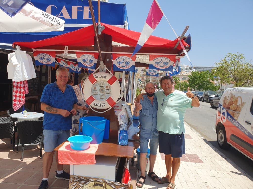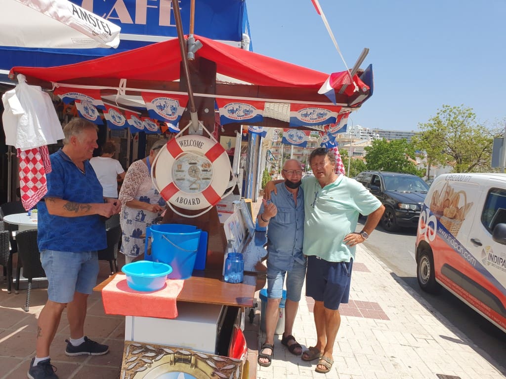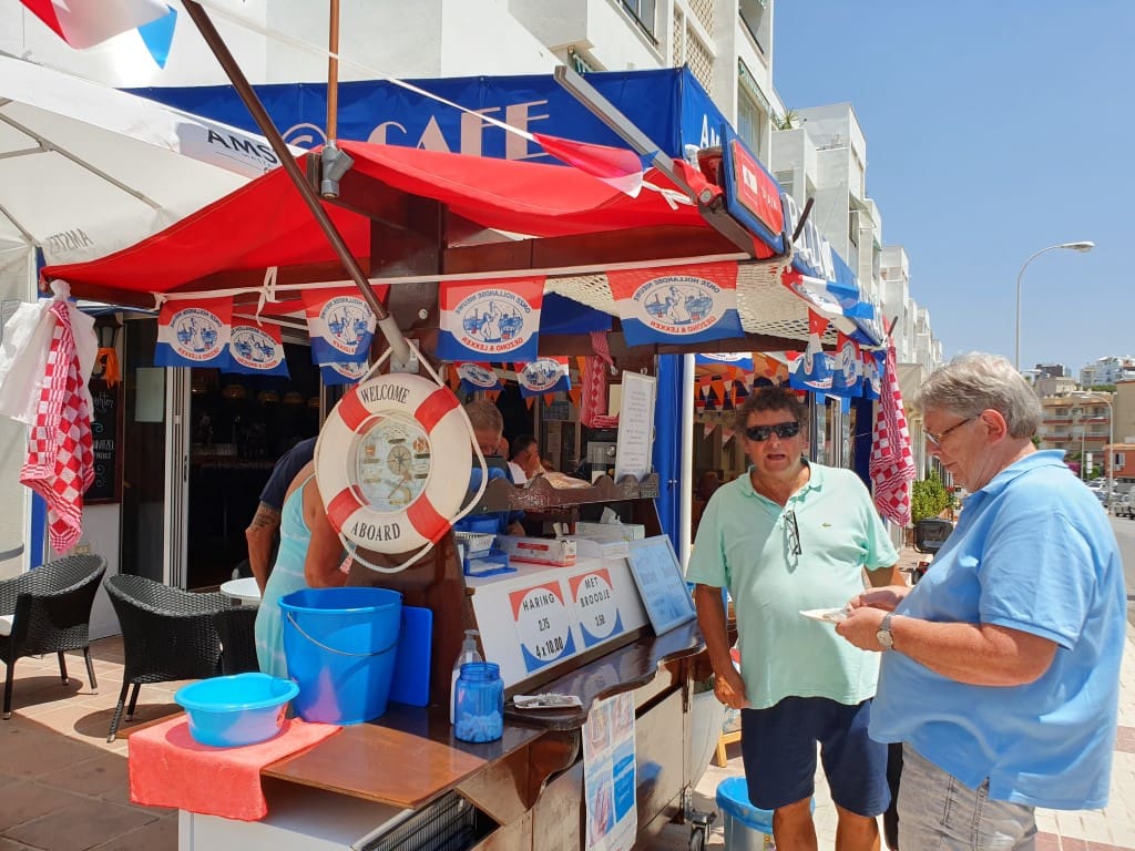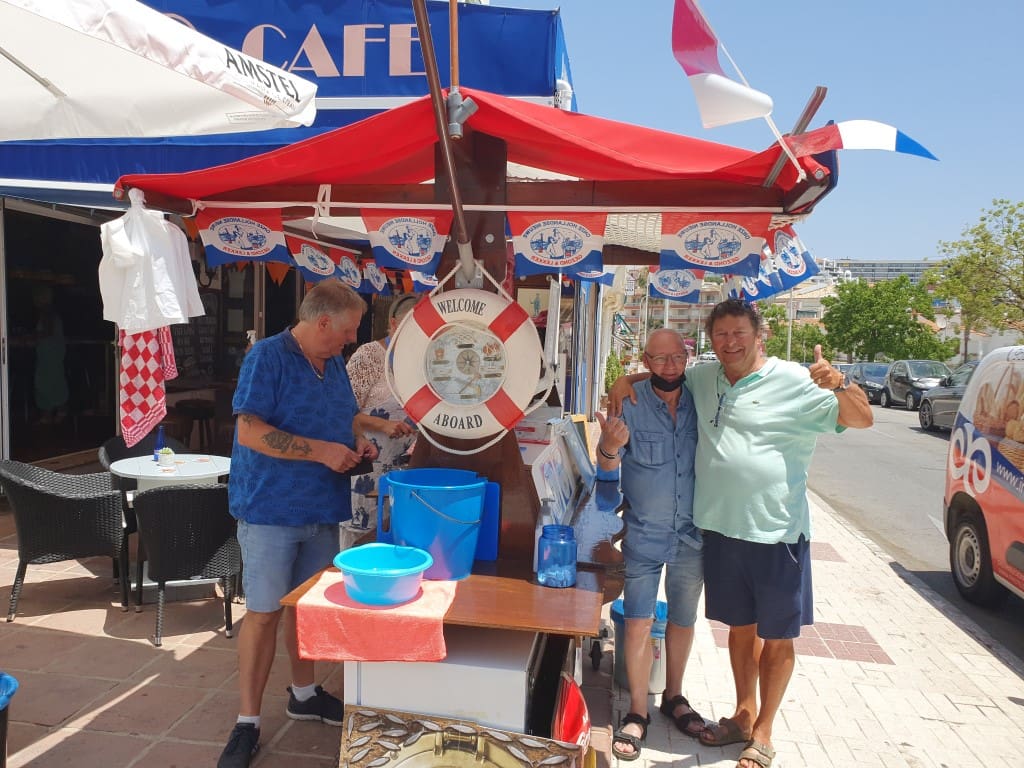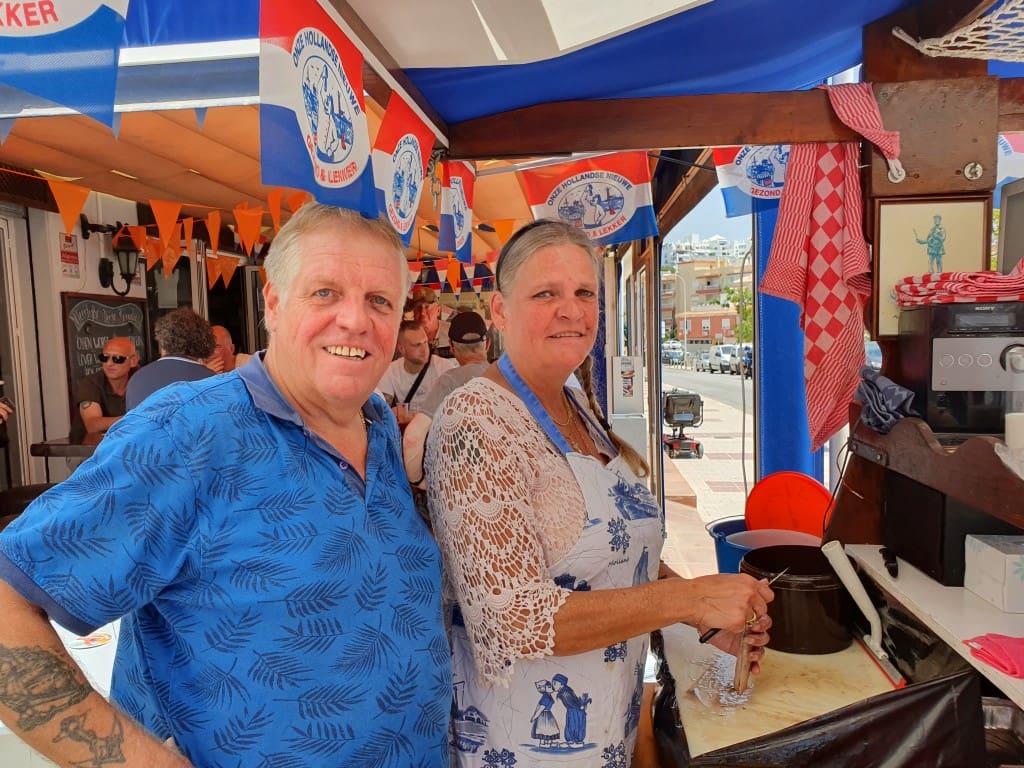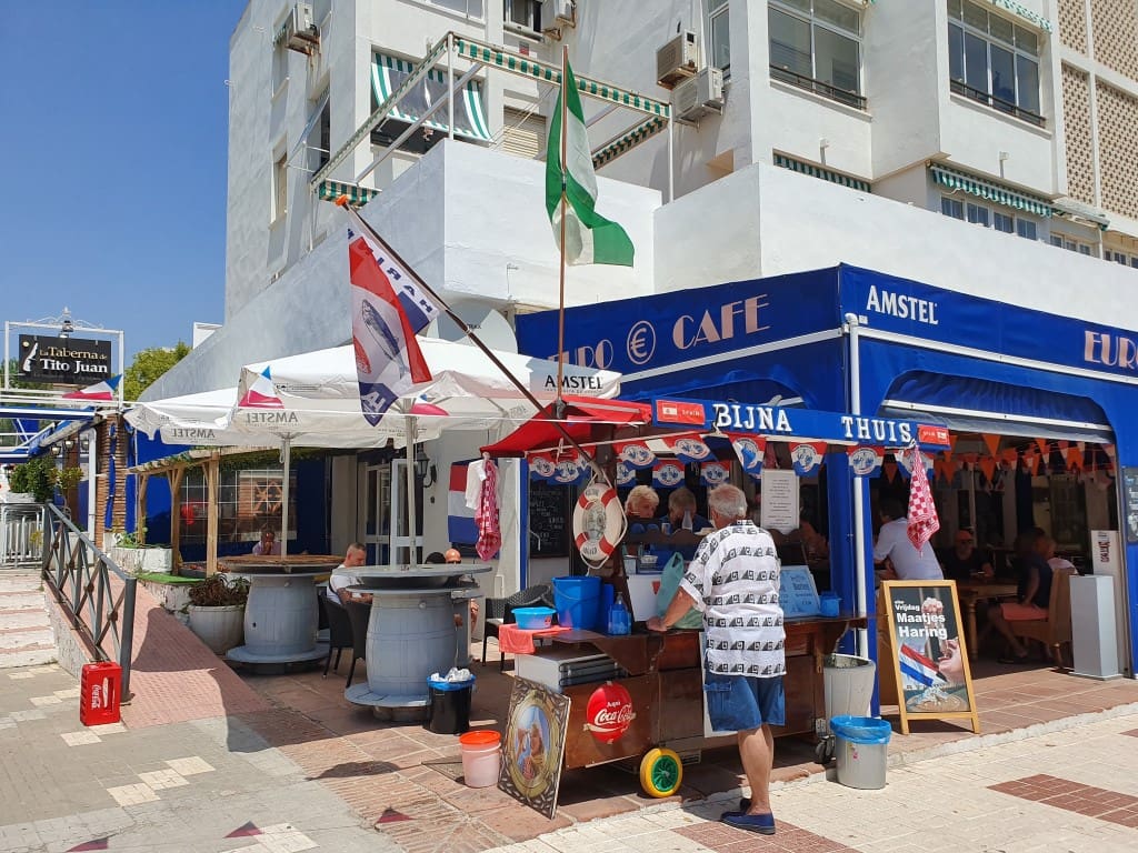 Zonde hoor geen haringparty’s dit jaar, nieuwe haring is en blijft behalve lekker ook iets feestelijks. Om dan toch maar een feestje te hebben met de nieuwe haring ben ik maar even naar La Carihuela gegaan waar Vlaardinger John Hofman en zijn Katwijkse vrouw Els al jaren elke vrijdag en zaterdag met zijn haringkar voor de Eurobar staat. Vandaag was er de eerste nieuwe haring en stond hij er uiteraard ook.
