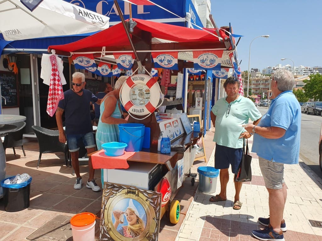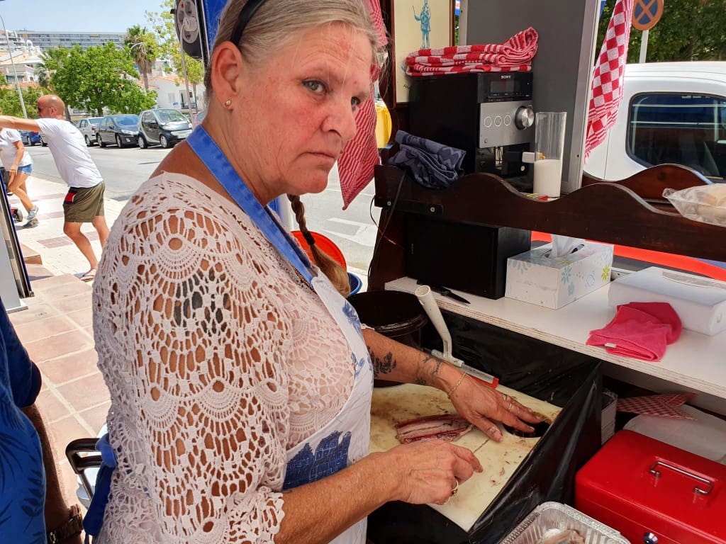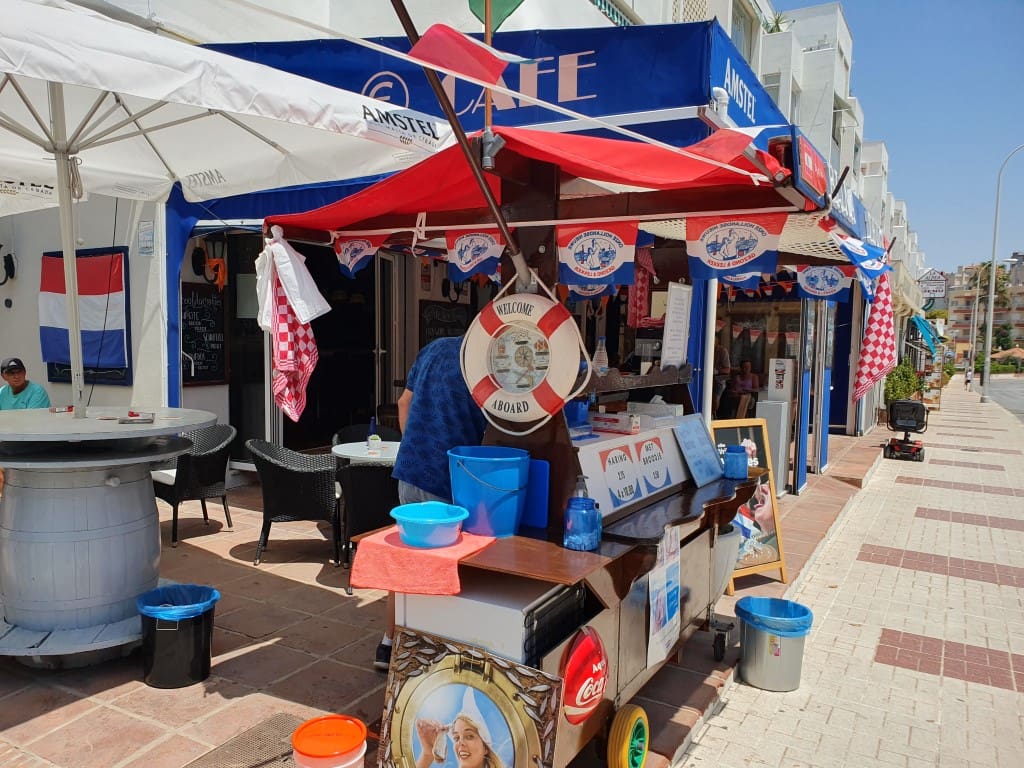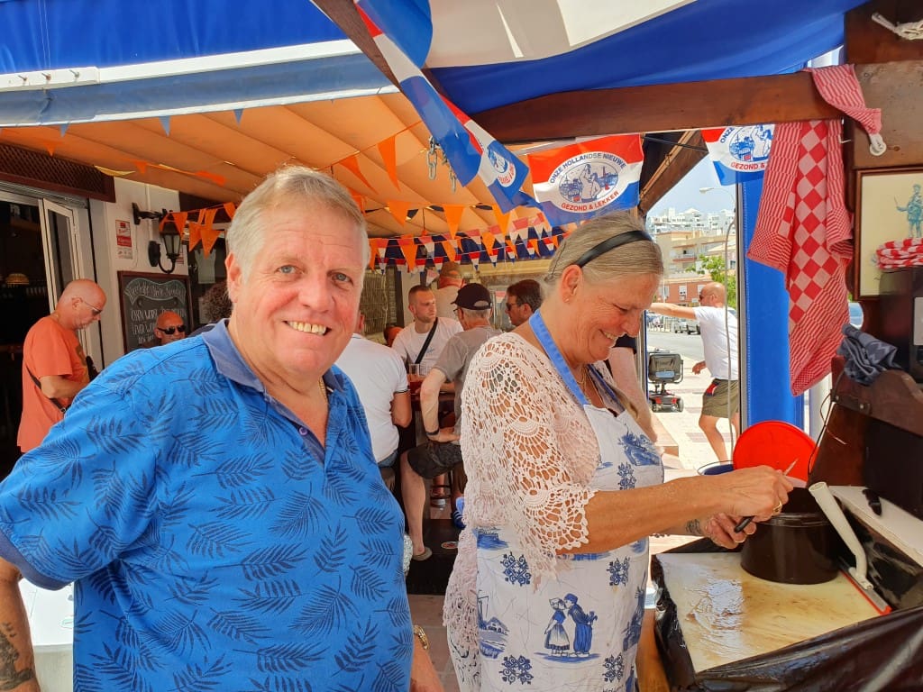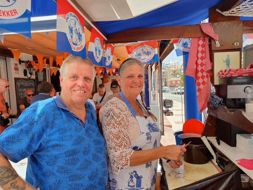 Zonde hoor geen haringparty’s dit jaar, nieuwe haring is en blijft behalve lekker ook iets feestelijks. Om dan toch maar een feestje te hebben met de nieuwe haring ben ik maar even naar La Carihuela gegaan waar Vlaardinger John Hofman en zijn Katwijkse vrouw Els al jaren elke vrijdag en zaterdag met zijn haringkar voor de Eurobar staat. Vandaag was er de eerste nieuwe haring en stond hij er uiteraard ook.