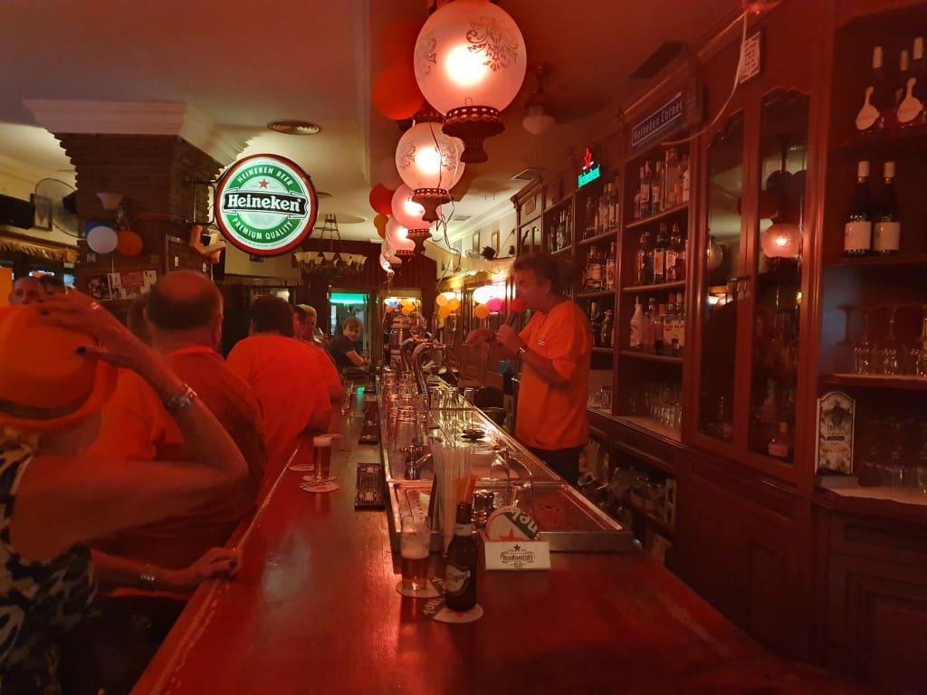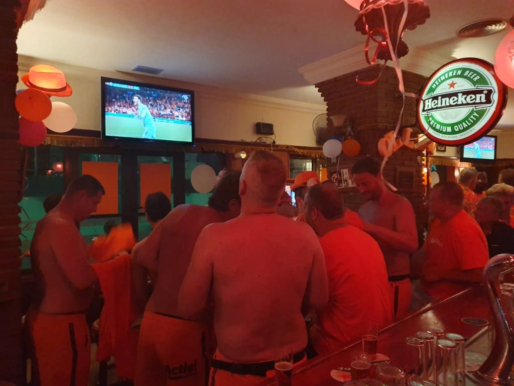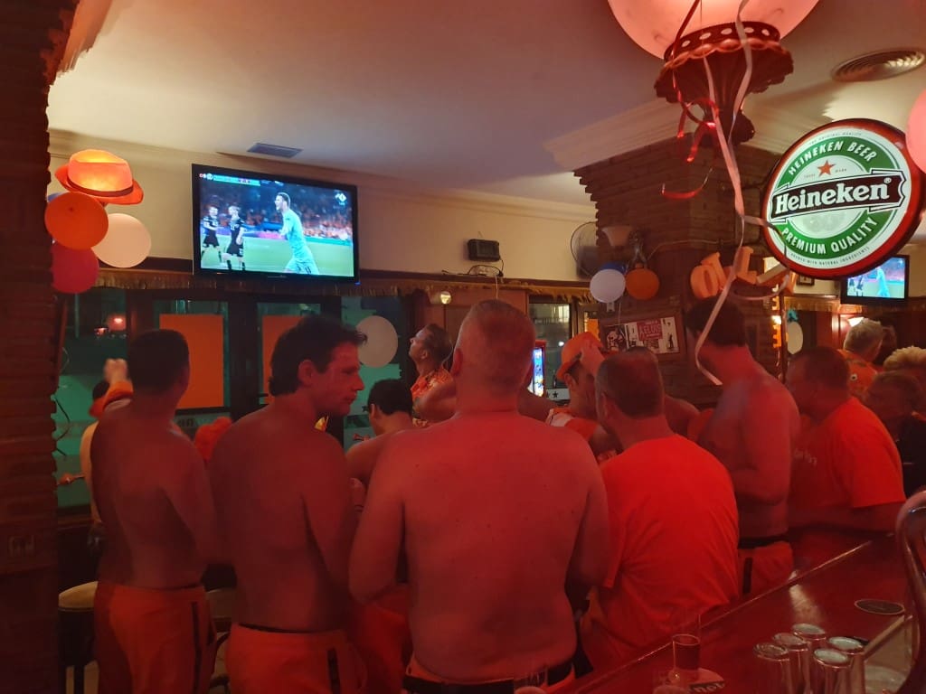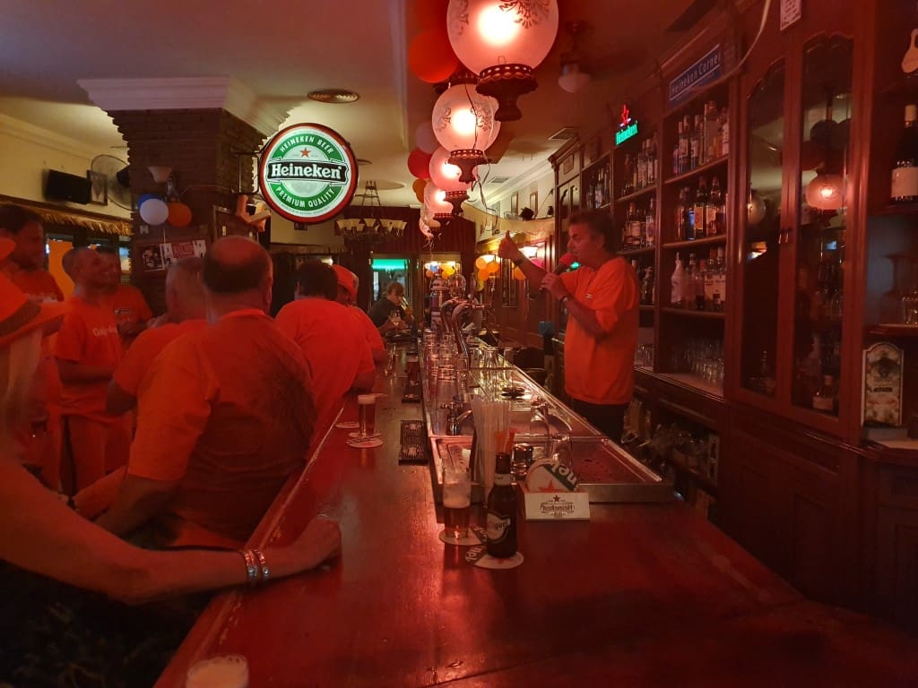 Voetbal kijken als je op vakantie bent is altijd een feestje, nou ja zo lang we winnen natuurlijk. Ik ging gisteravond in de Heineken Corner kijken. Ik was op tijd, dus kon lekker op mijn vaste plekkie op de hoek van de bar zitten.