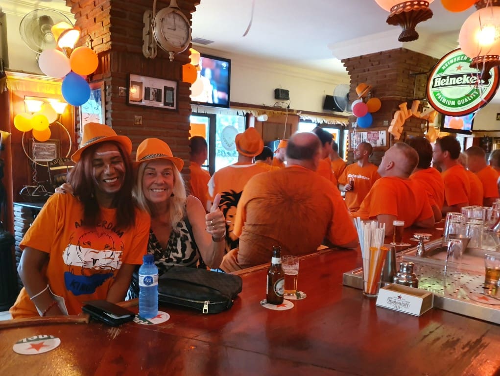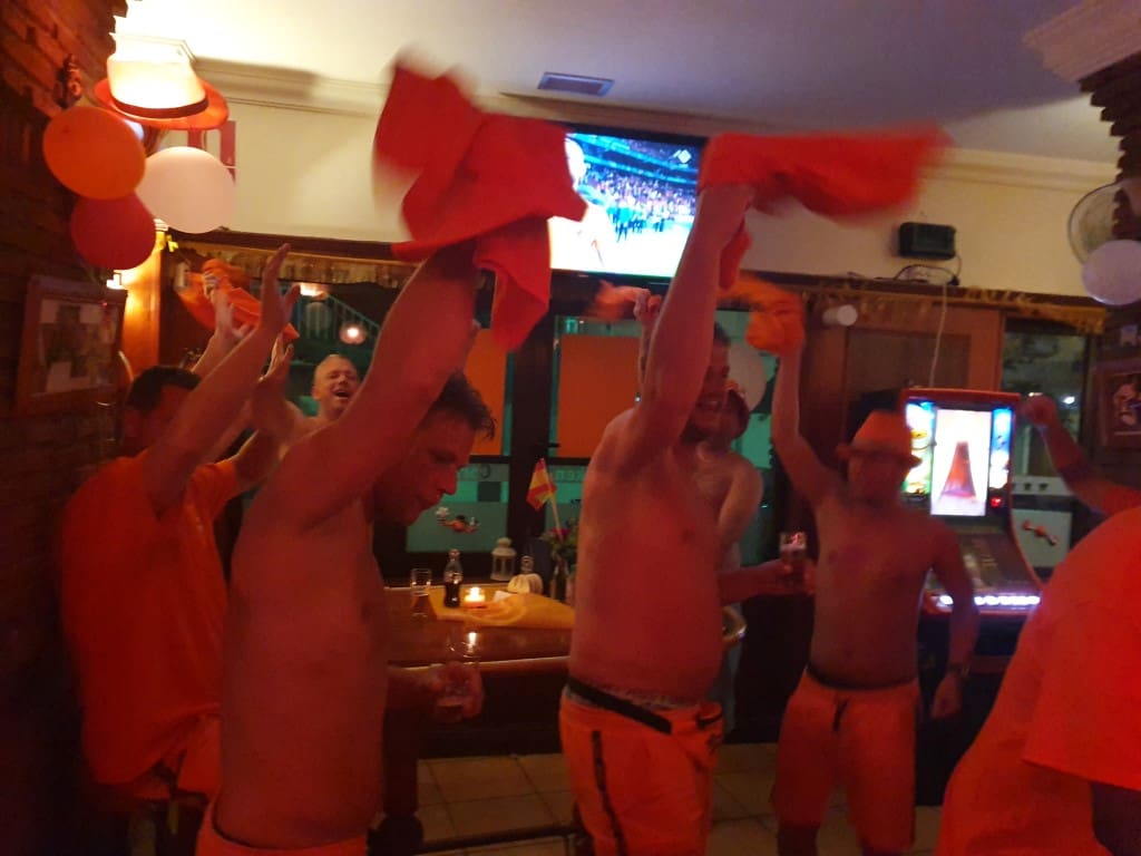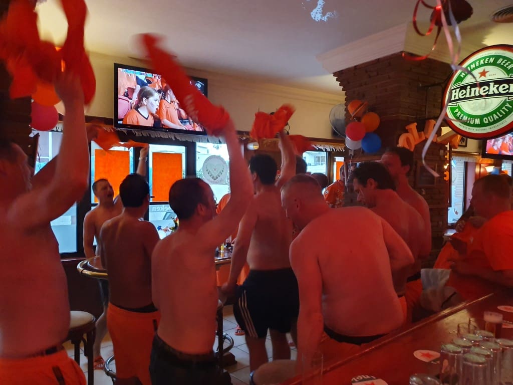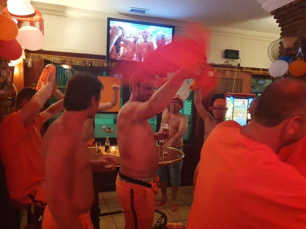 Voetbal kijken als je op vakantie bent is altijd een feestje, nou ja zo lang we winnen natuurlijk. Ik ging gisteravond in de Heineken Corner kijken. Ik was op tijd, dus kon lekker op mijn vaste plekkie op de hoek van de bar zitten.