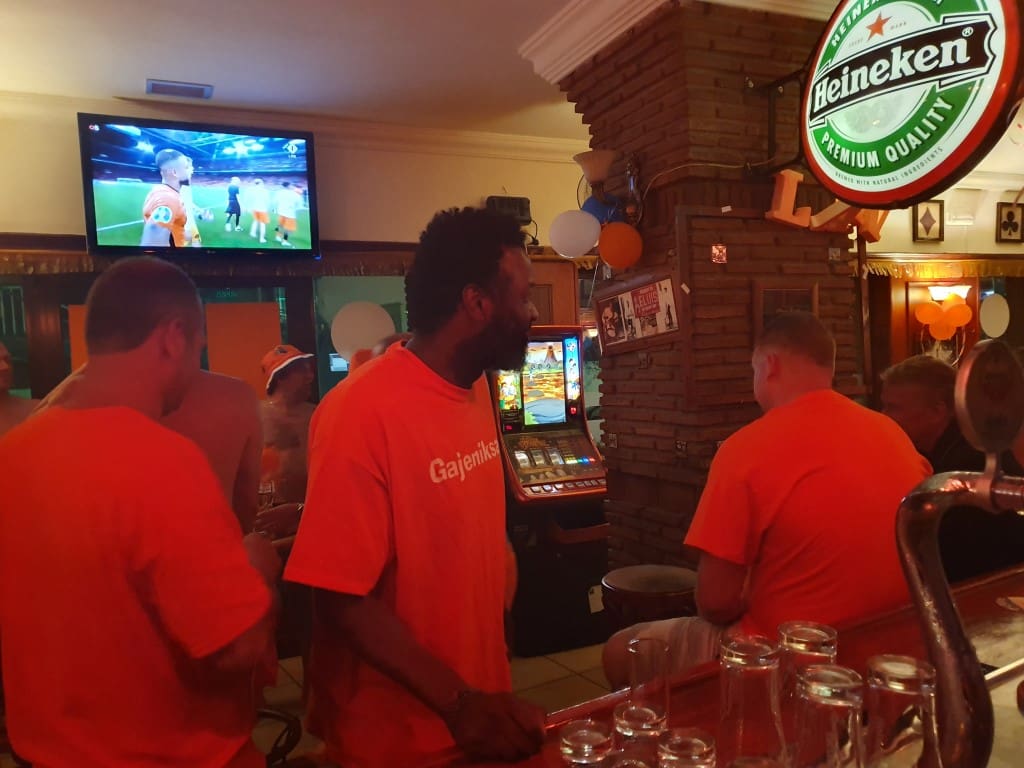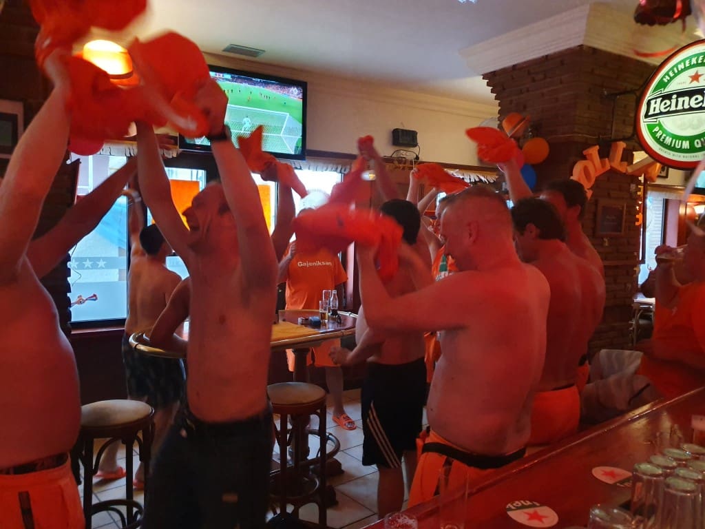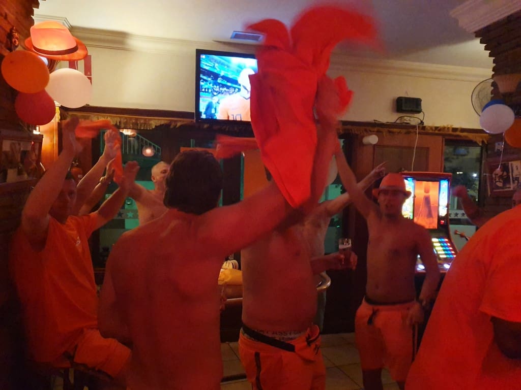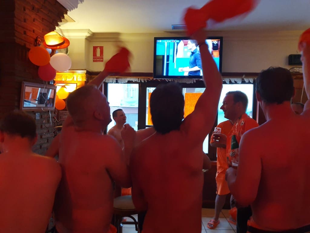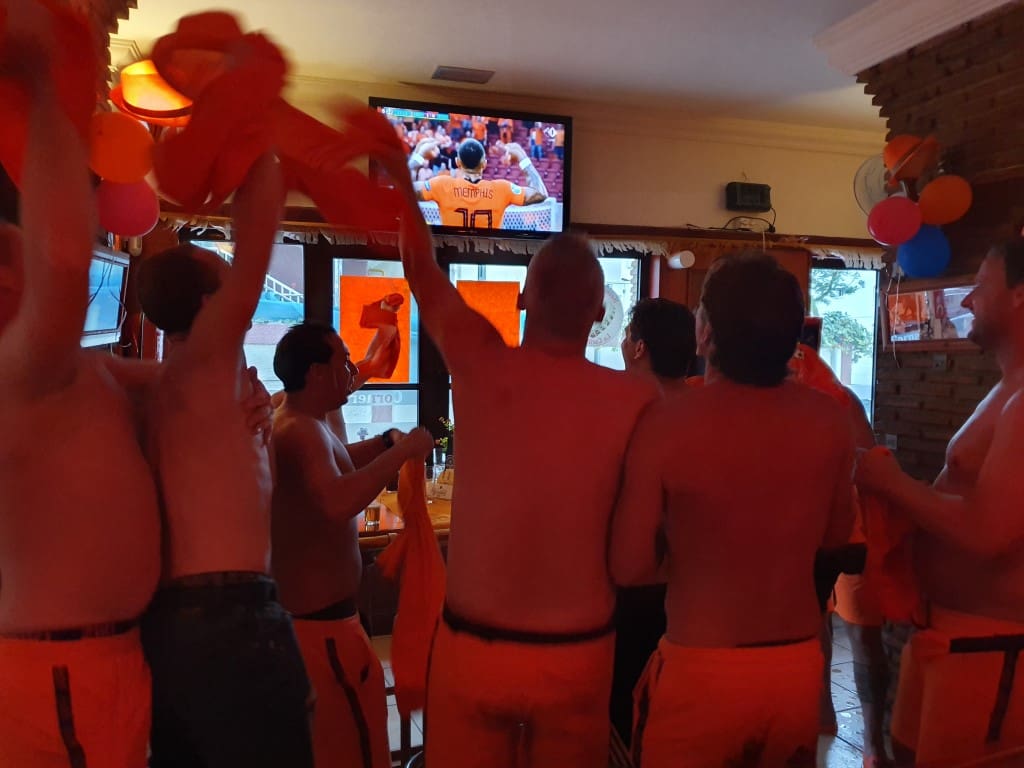 Altijd beregezellig om in een leuk café voetbal te kijken. Zeker als we winnen!