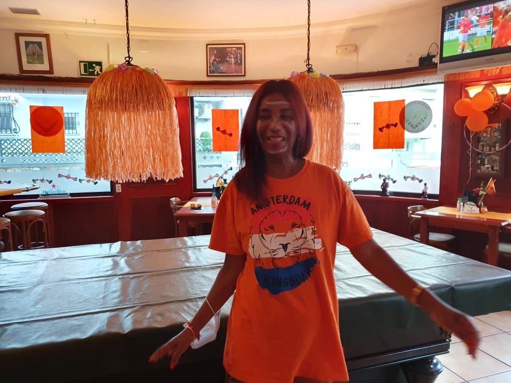 Mooi he hoe deze Spaanse helemaal achter oranje staat.