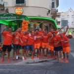 In de rust vroegen een paar Hagenezen of ik soms voetbalde bij Roodenburg omdat er Leidse Glibber op mijn oranje polo stond. Nee hoezo vroeg ik verbaasd. Wat bleek de heren zijn lid van Sportvereniging Quick Steps en zij organiseren elke jaar een oliebollen en appelflappen voetbaltoernooi. Roodenburg speelt al jaren mee en komt zelfs met een hele bus vol supporters. Drie keer raden hoe hun team heet, inderdaad De Leidse Glibbers. Natuurlijk even een groepsfoto van Quick Steps gemaakt.