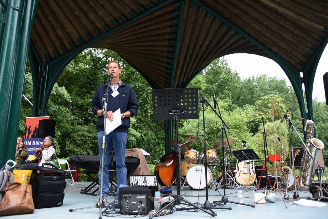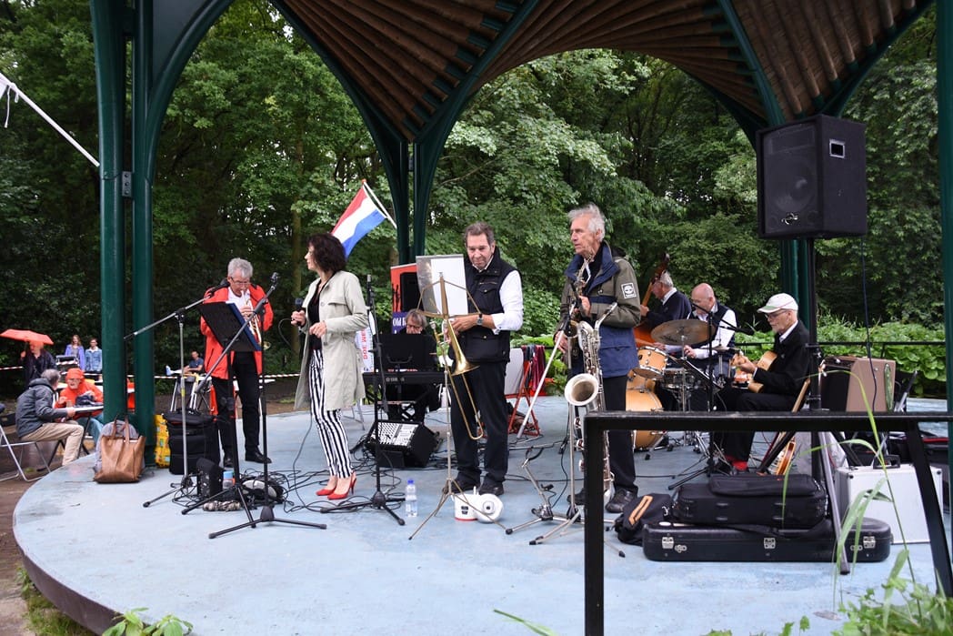 Op het podium speelde The Old Rhine Jazzband nog een paar nummers. Mooie bijkomstigheid, 25 jaar geleden werd het waterpodium de Waterlelie feestelijk geopend met een optreden van de Old Rhine Jazzband.