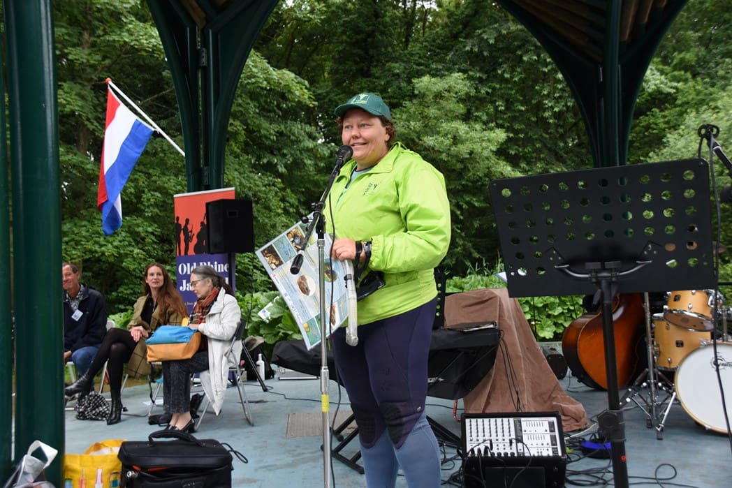 Wethouder Fleur Spijker feliciteerde het bestuur en gaf het belang van het park aan. We hebben een groene binnencirkel in Leiden, dat is het Singelpark. Daarnaast willen we een groene buitencirkel die met een soort spaken in de binnencirkel steekt. De Leidse Hout is een van die belangrijke spaken.