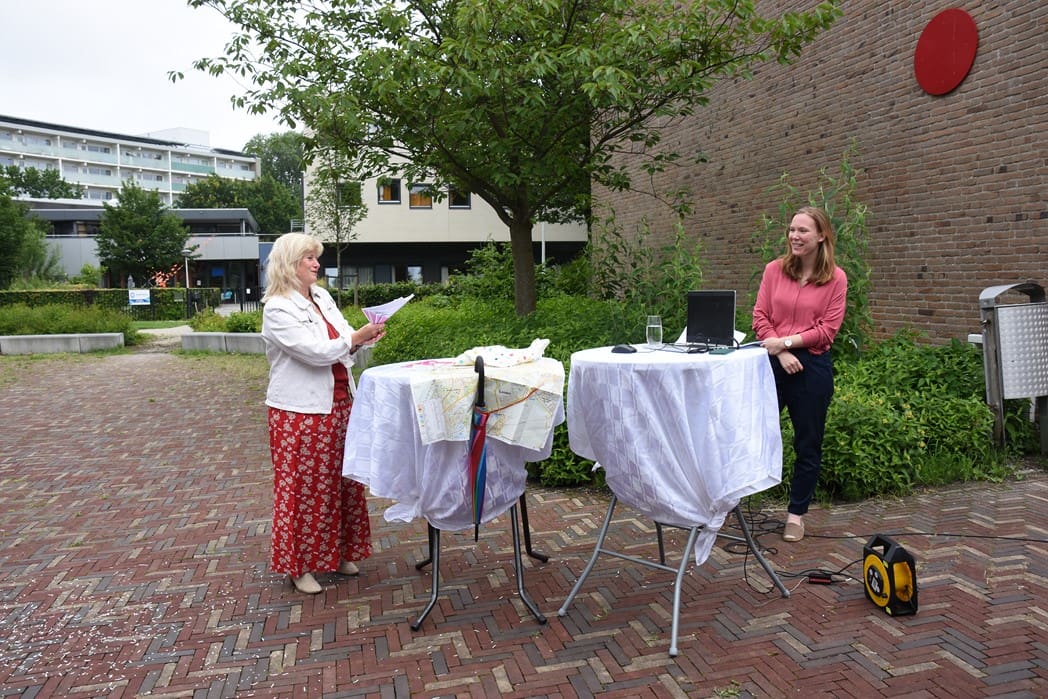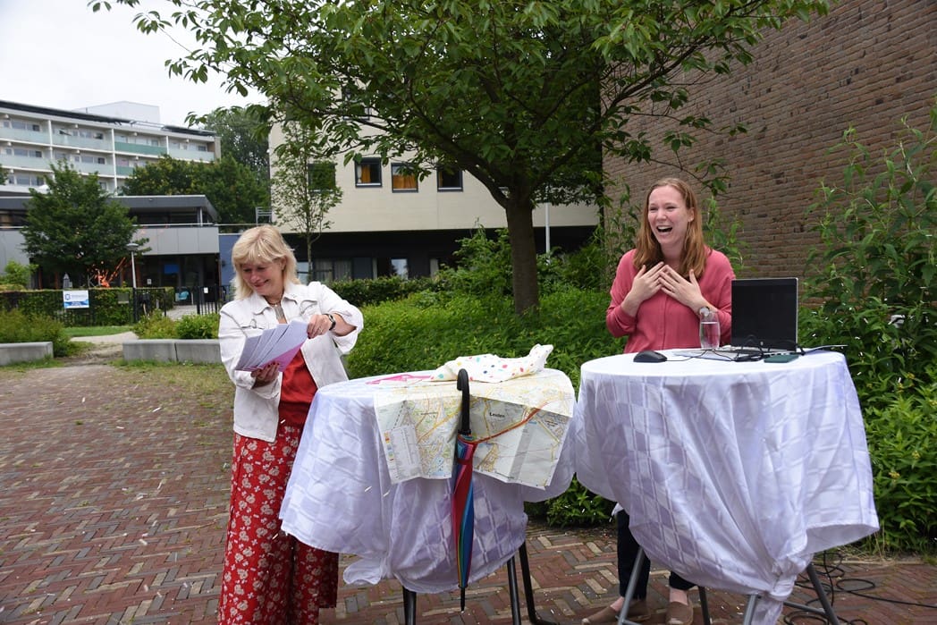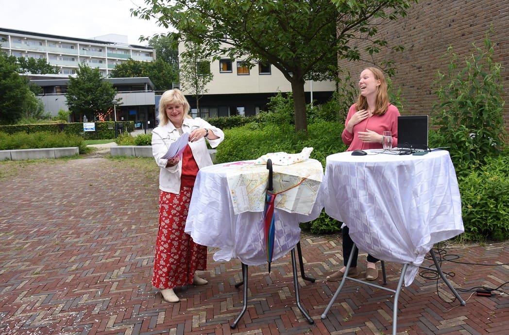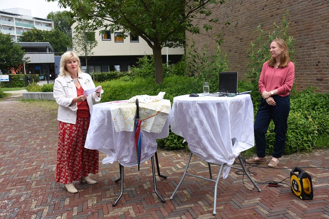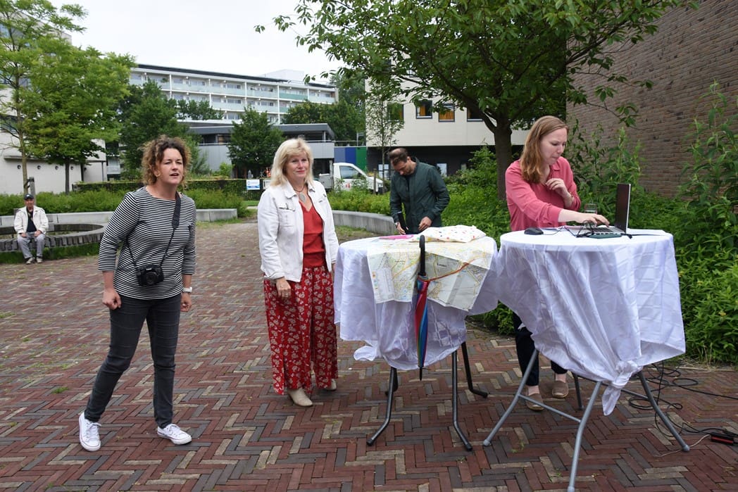Sophie vertelde dat in alle vier de wijken een wandeling is uitgezet. Vandaar dat er een zoomverbinding was met de andere drie wijken waar de wandeling tegelijkertijd gepresenteerd werd.